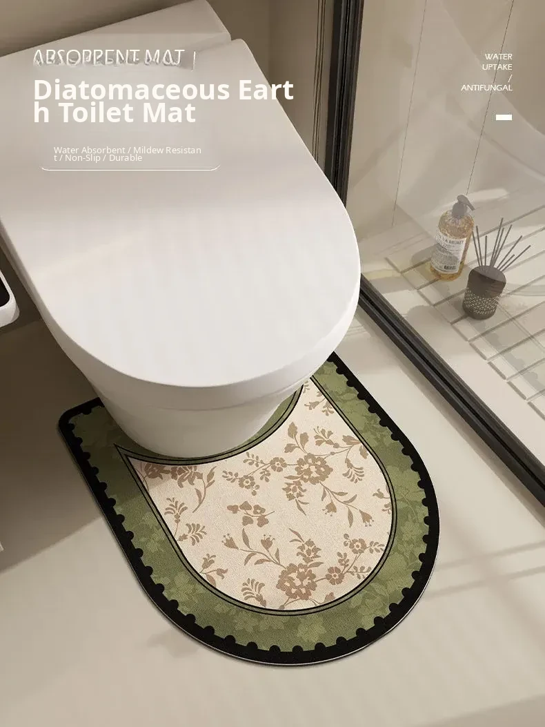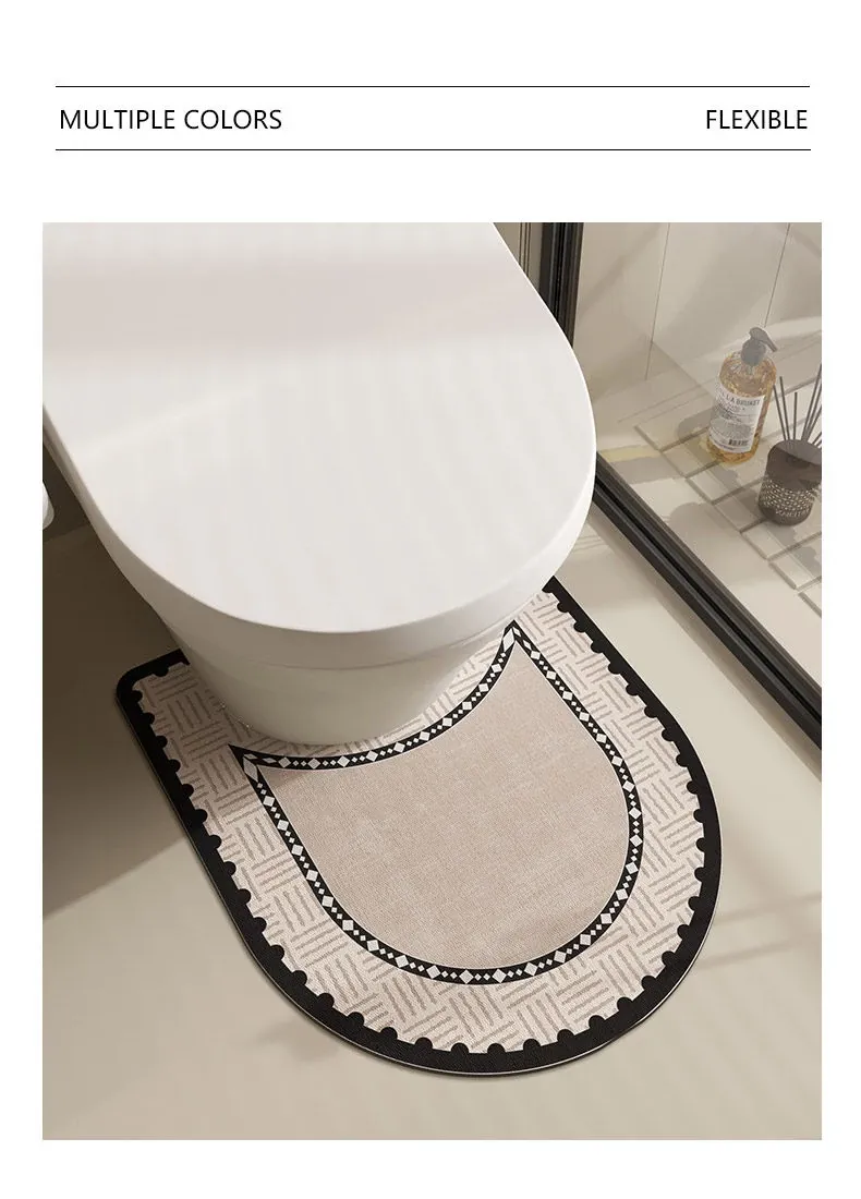 American U-Shaped Toilet Mat - Bathroom Mat with Diatomaceous Earth for Absorbency, Non-Slip, Quick-Dry, Splash-Proof, Perfect for Comfort and Hygiene