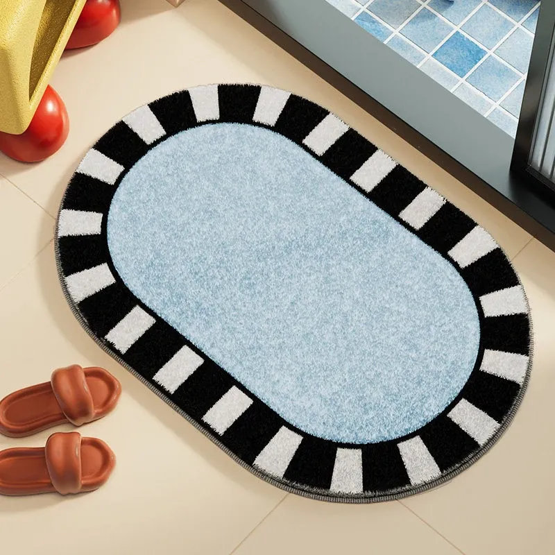 Bauhaus Style Bathroom Mat - Plush Lambswool Absorbent Rug, Non-Slip Quick-Dry Oval Bath Mat, Ideal for Toilets and Washrooms, Stain-Resistant and Easy to Clean