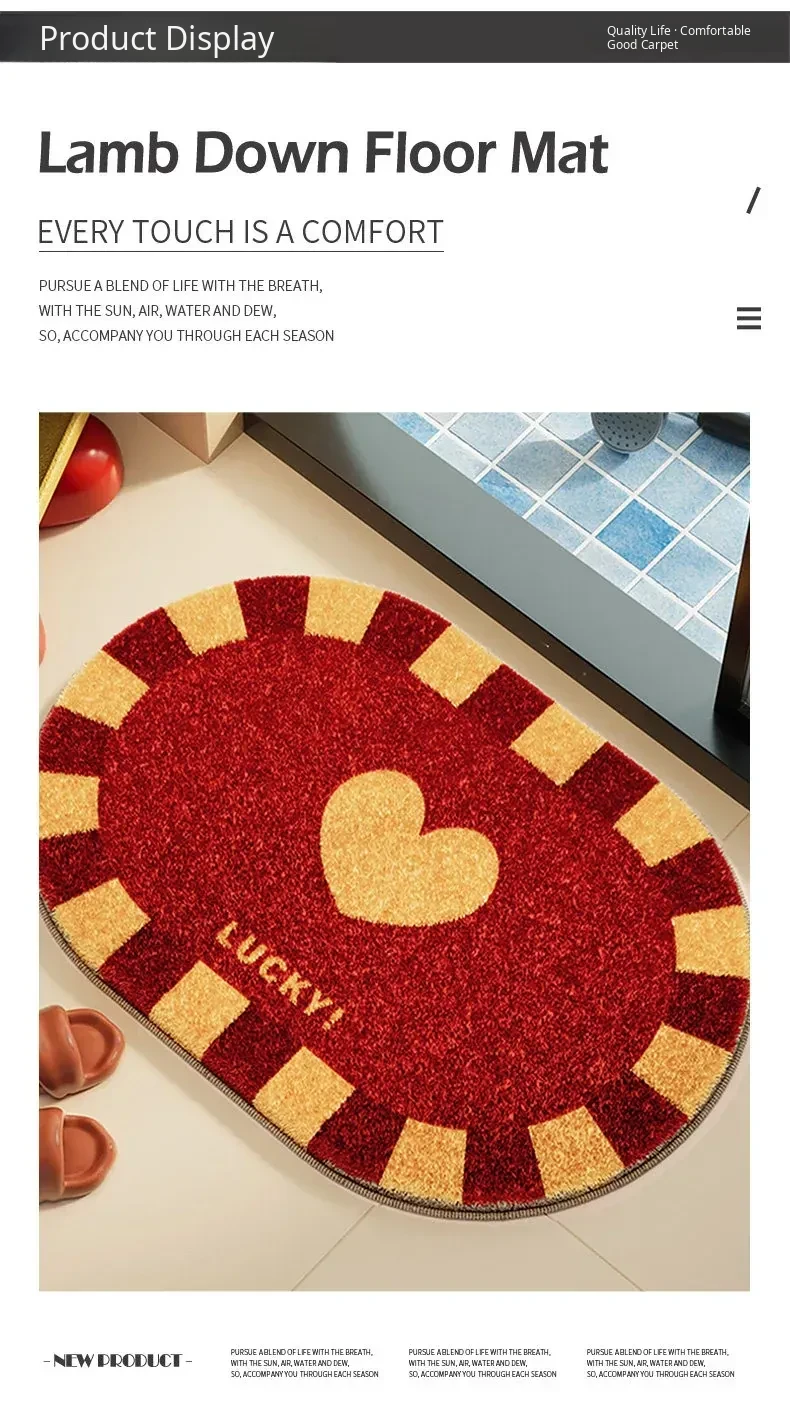 Red Bottom Lucky Heart Dot Plastic Bottom Lambswool Floor Mat - Oval