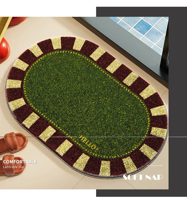 Plaid Greeting Dot Plastic Bottom Lambswool Floor Mat - Oval