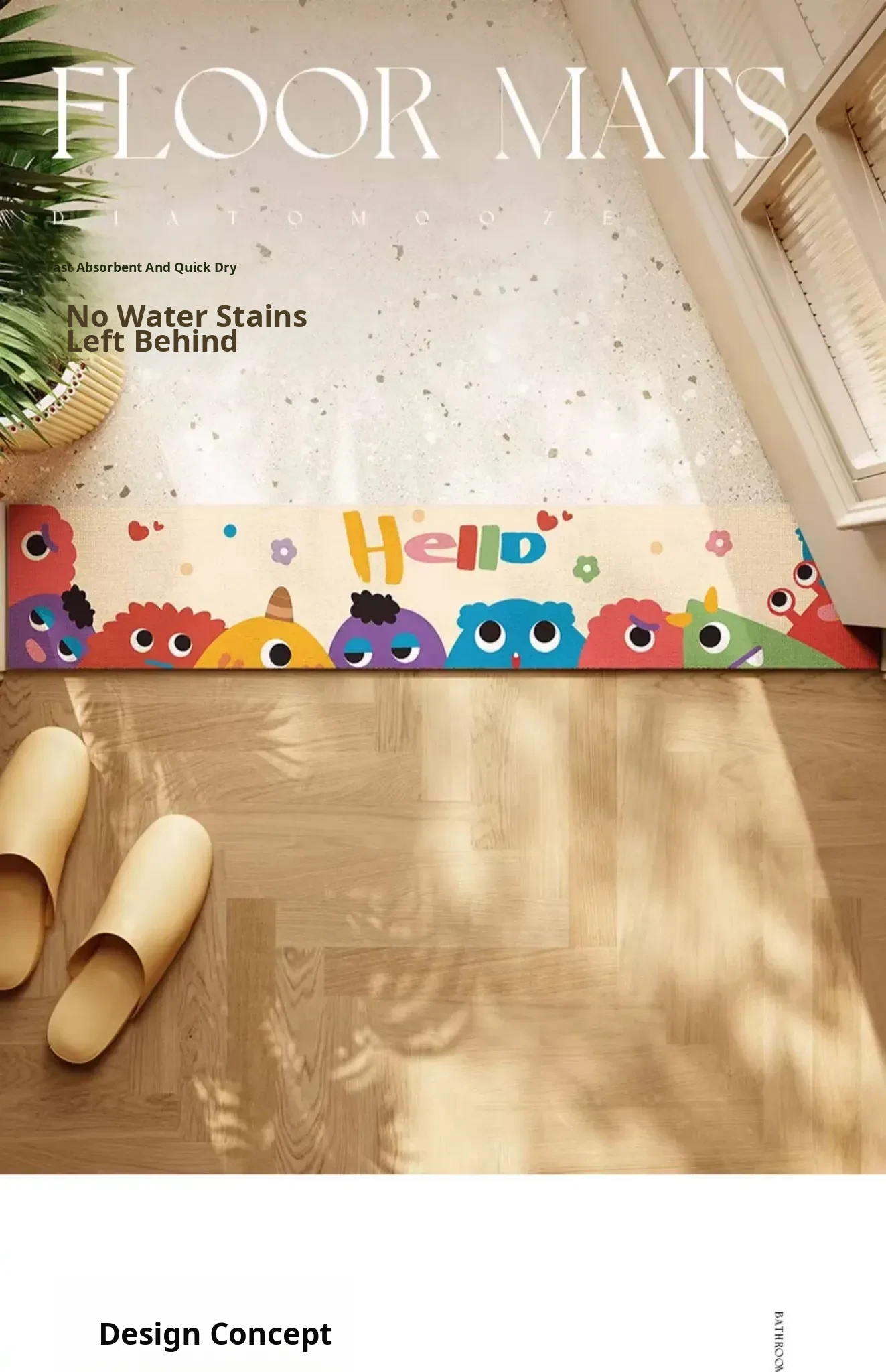 Cartoon Diatomaceous Earth Absorbent Mat - Ultra-Thin Long Narrow Door Mat for Kitchen and Bathroom, Perfect for Entryways and Thresholds
