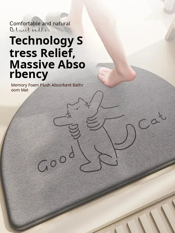 Kitten Beckoning Carved Memory Foam Floor Mat-Semicircle
