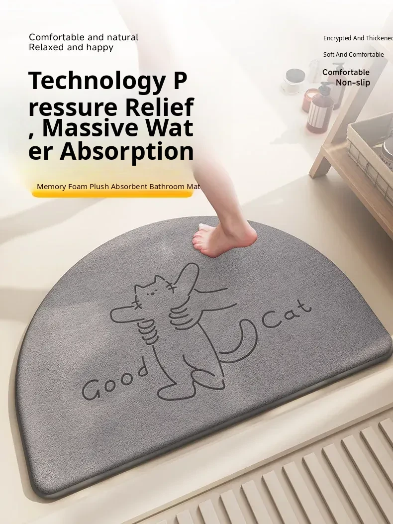 Cartoon Half-Round Memory Foam Bath Mat - Soft, Quick-Dry, and Water Absorbent Carpet for Home Use - Stylish and Easy to Clean Plush Bathroom Rug