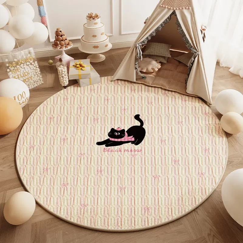 Cartoon Kids Room Round Tent Mat - Versatile All-Season Living Room Carpet, Perfect for Study Chairs and Rocking Chairs, Anti-Slip Design for Safety and Comfort