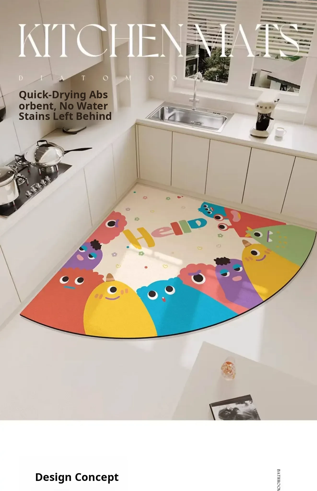 Cartoon Shaped Kitchen Mat - Non-Slip, Oil-Resistant, Easy to Clean, Stain-Resistant, and Super Absorbent Diatomite Carpet for Your Kitchen!