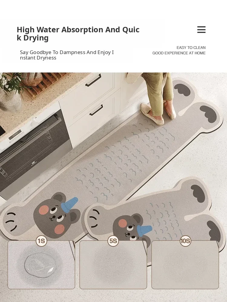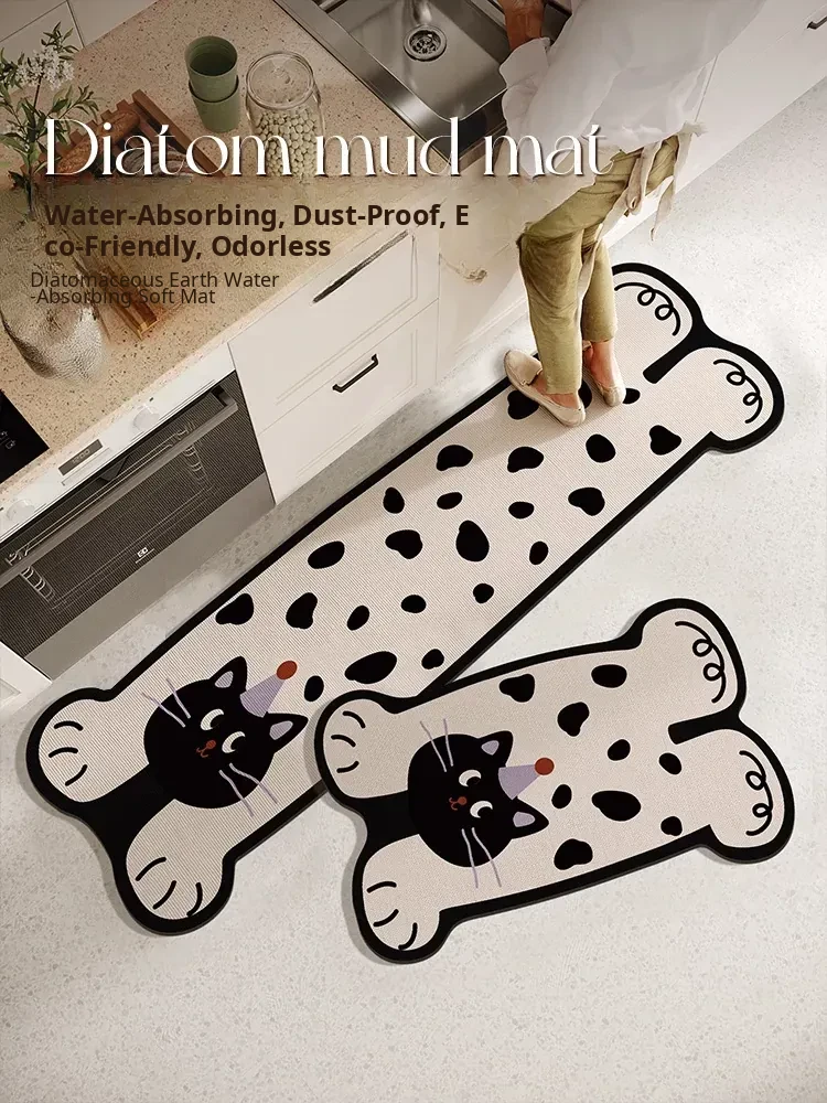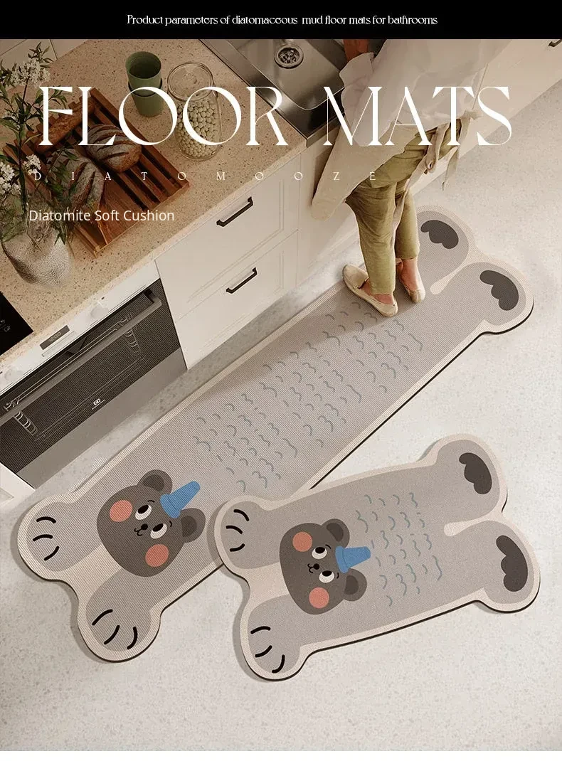 Cartoon-Shaped Non-Slip Kitchen Mat – Absorbent Diatomaceous Earth for Oil Resistance & Easy Maintenance, Long and Stain-Resistant Rug Perfect for Everyday Use