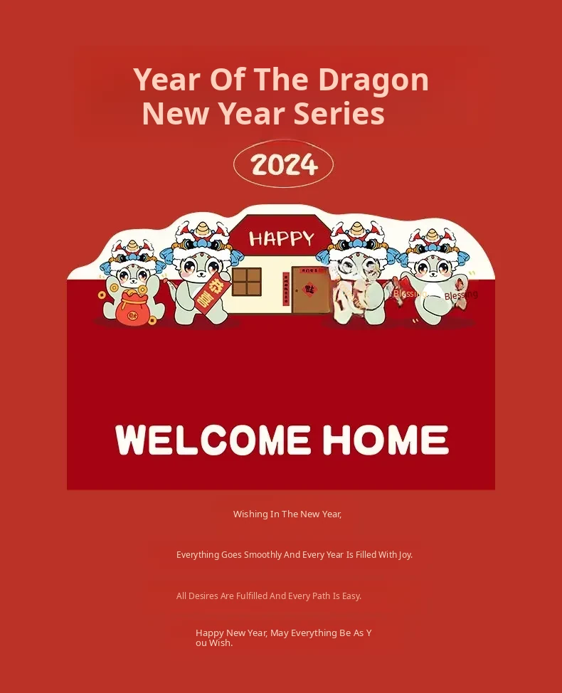 Chinese New Year 2024 Horse Year Entry Door Mat - Unique Shape Non-Slip Doormat for Home Entrance, Festive Welcome Mat for a Safe and Stylish Entryway
