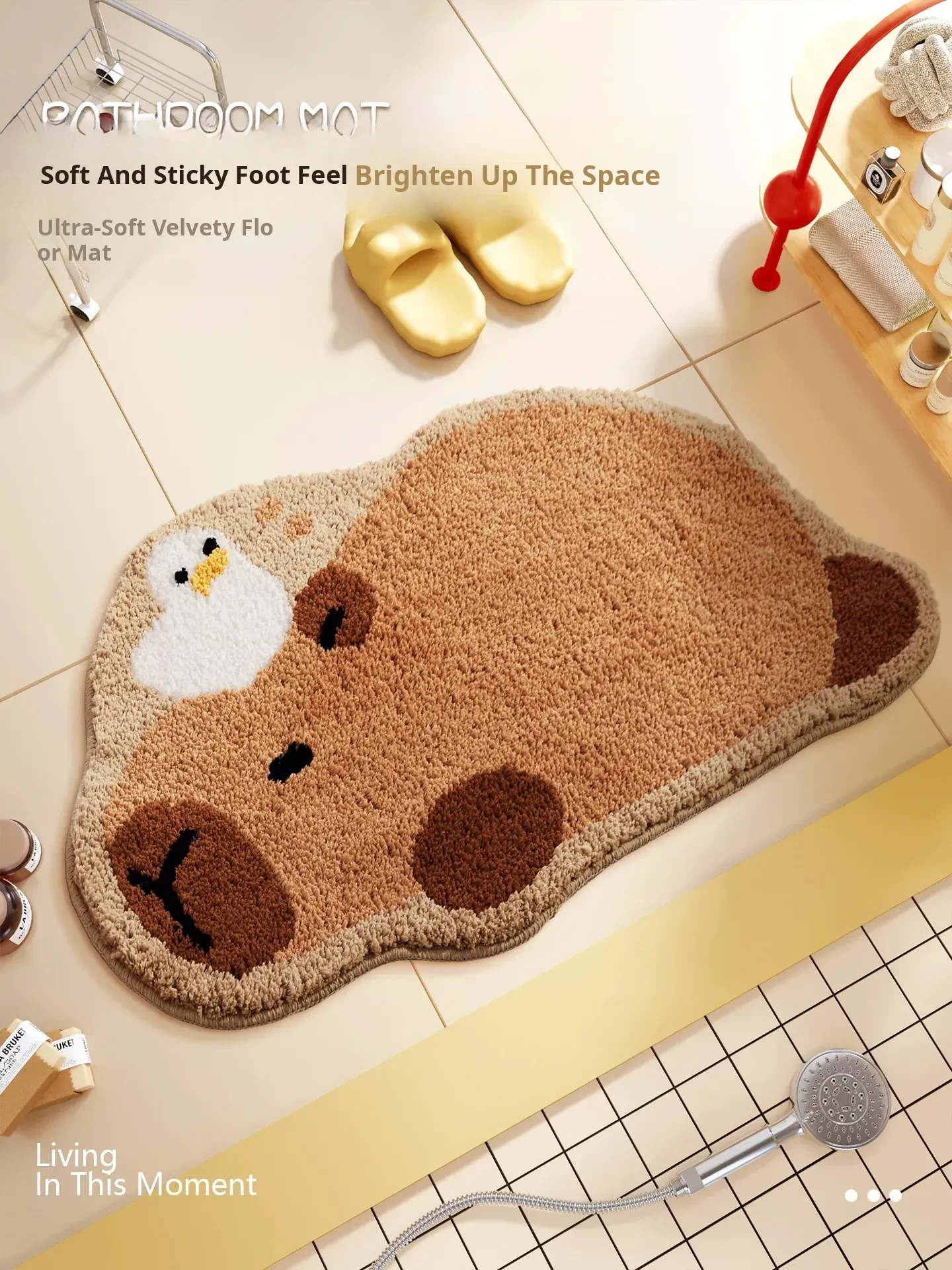 Cozy Capybara Bath Mat - Winter Plush Non-Slip Carpet, Thickened Velvet Absorbent Floor Mat for Bathroom Use, Perfect for Comfort and Safety