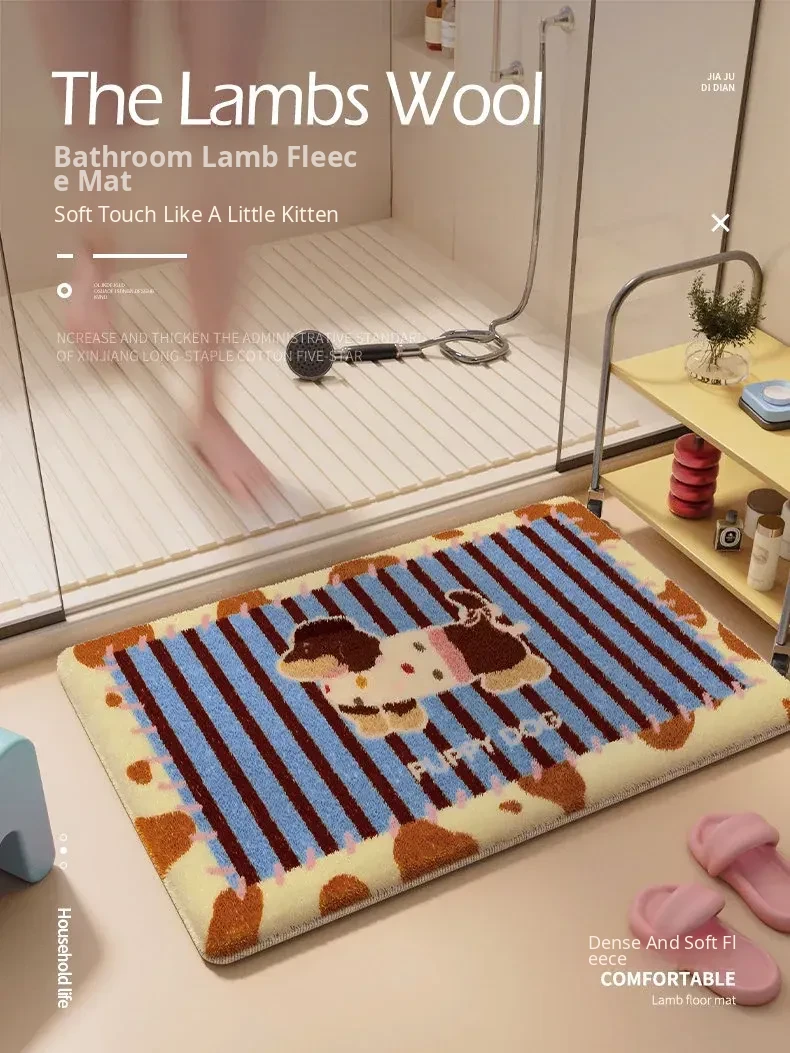 Cozy Cartoon Bathroom Water-Absorbent Plush Thick Bath Mat - Non-Slip Carpet for Winter, Essential for Your Bathroom!