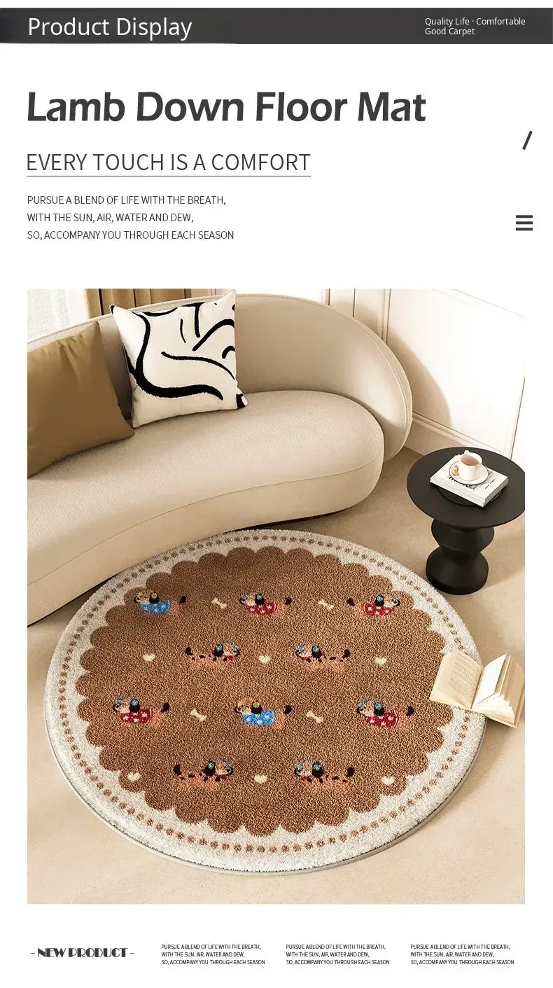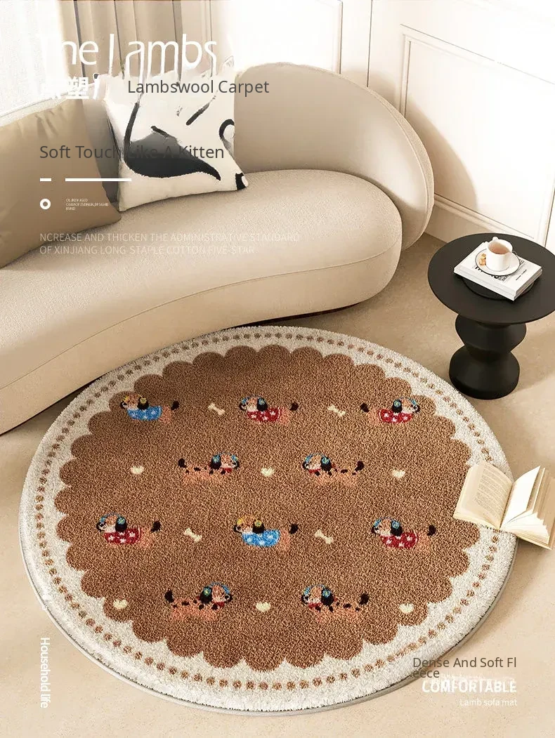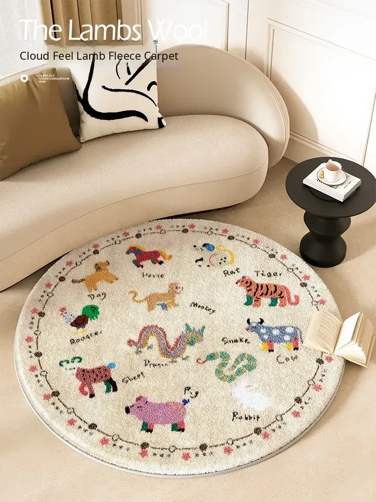 Cozy Round Cartoon Area Rug for Living Room and Study – Plush Thick Warm Carpet, Low Maintenance Floor Mat for Relaxation and Coffee Table Use