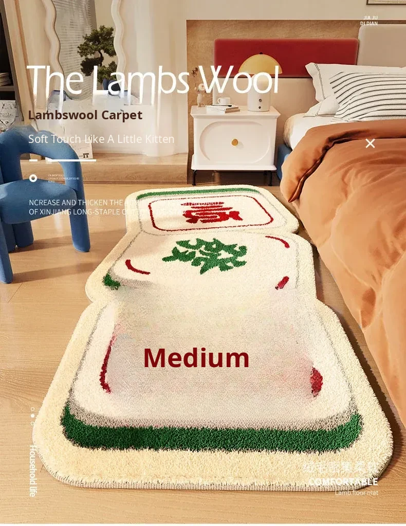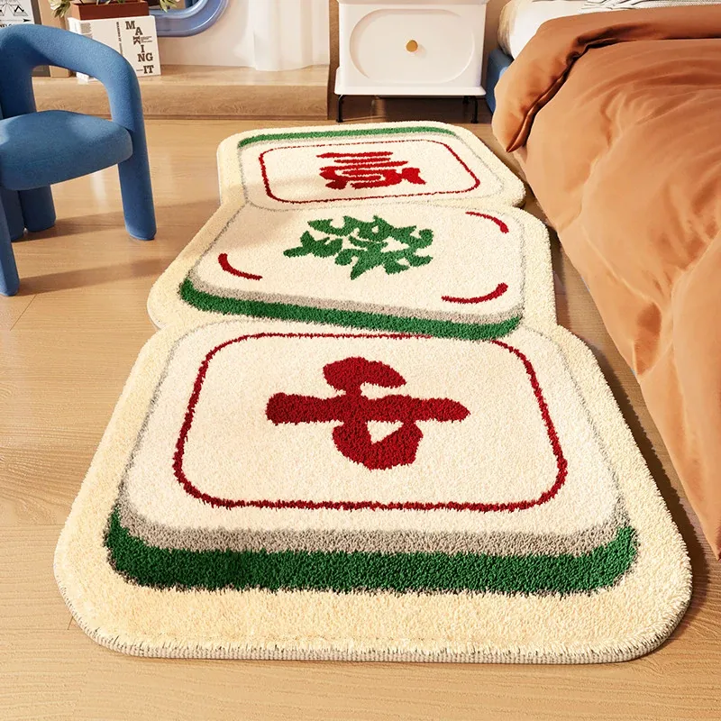 Creative Red Mahjong Shaped Area Rug - Plush Non-Slip Bedroom Mat for Winter, Perfect for Bedside and Floor Use, Enhances Comfort and Style in Your Home