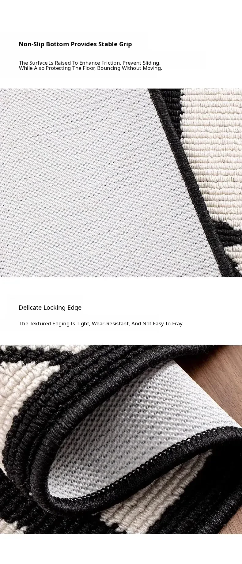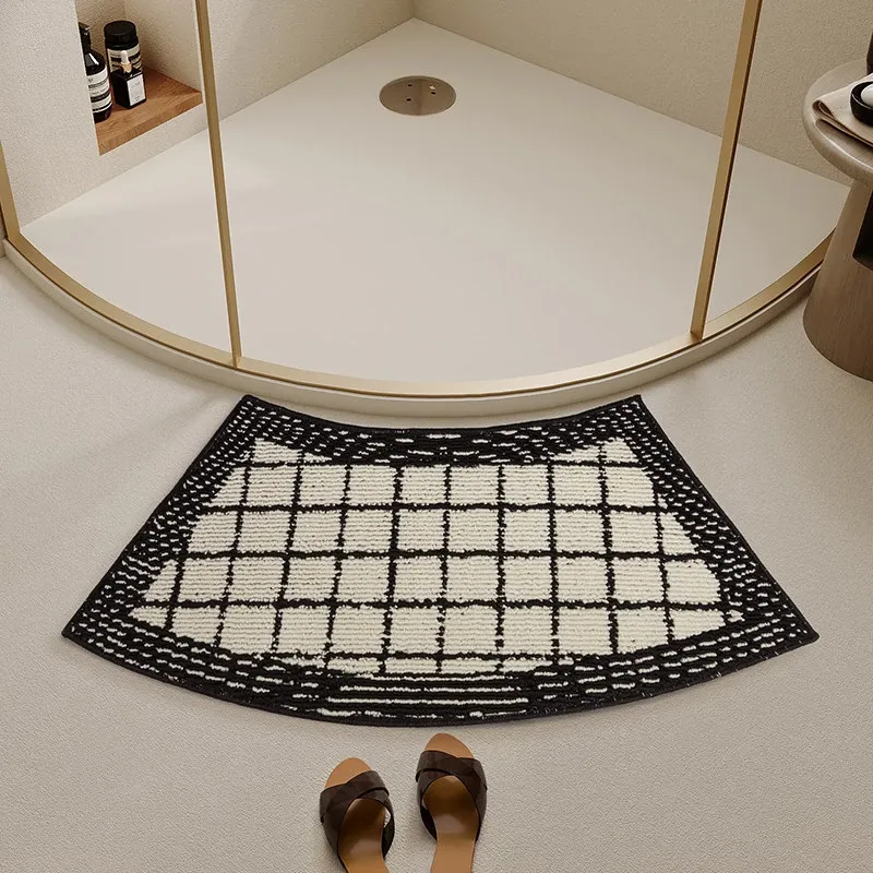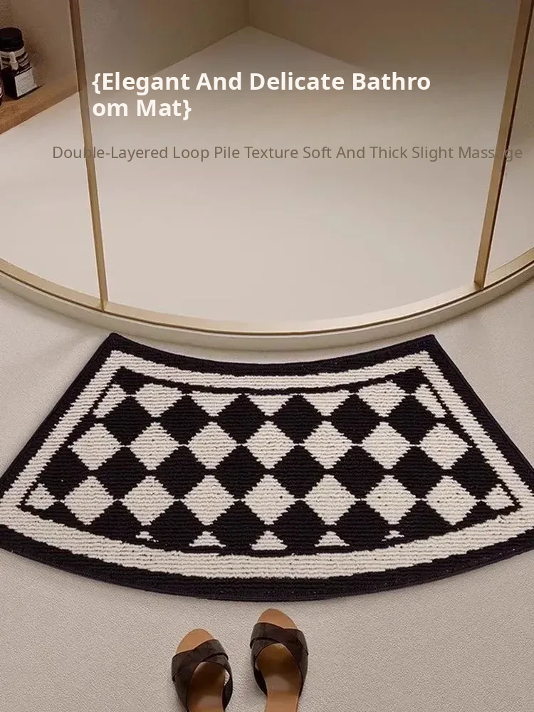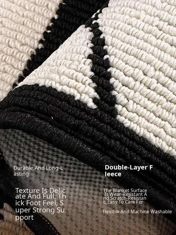 Modern Checkerboard Black Double Layer Loop Velvet Floor Mat-Curved