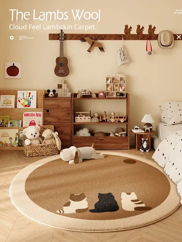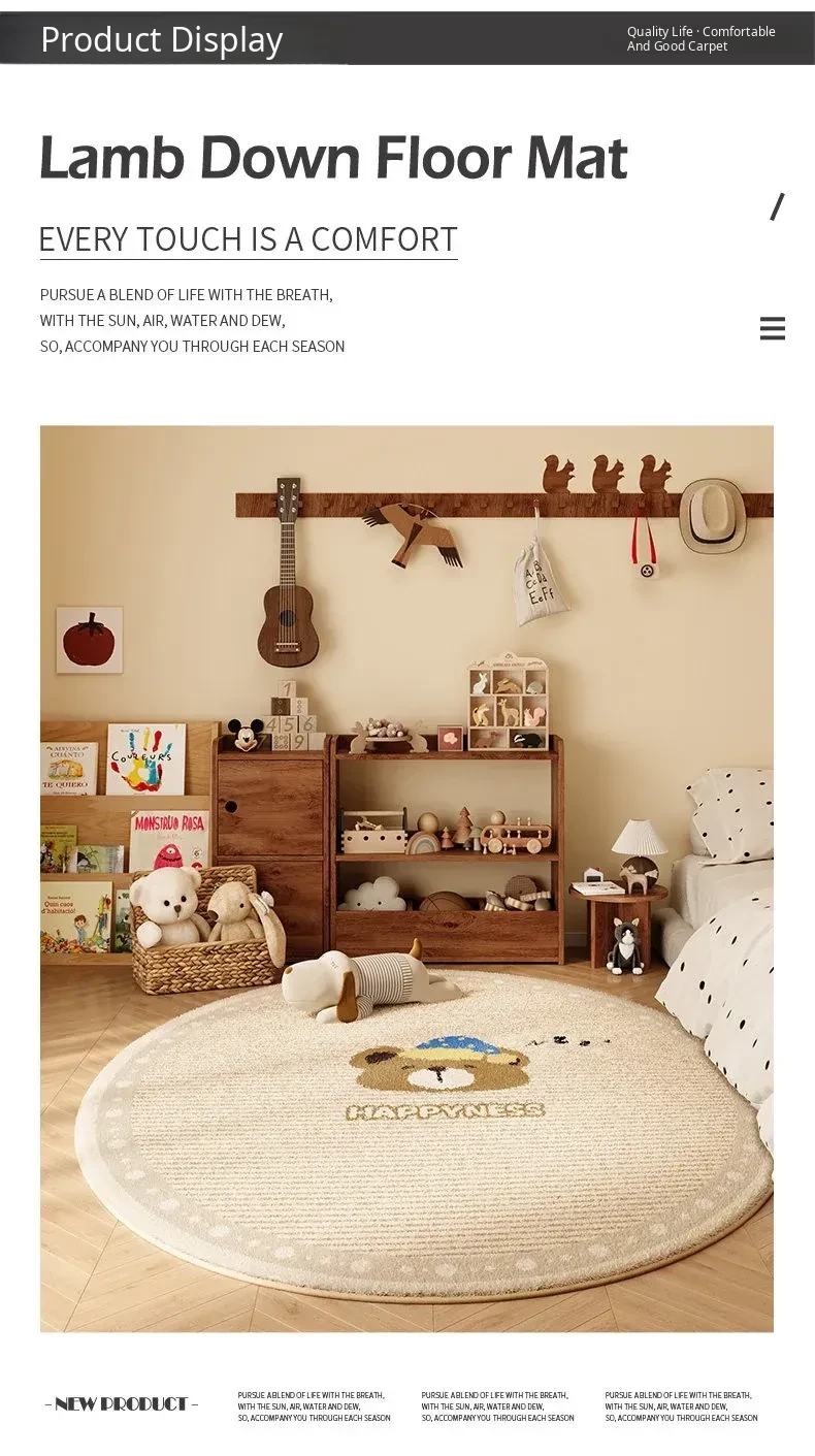 Cute Round Cartoon Area Rug for Girls' Bedroom - Non-Slip Plush Carpet Mat for Kids' Room, Perfect for Bedside Decor and Cozy Comfort