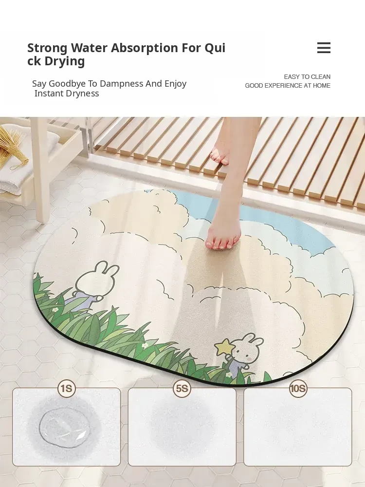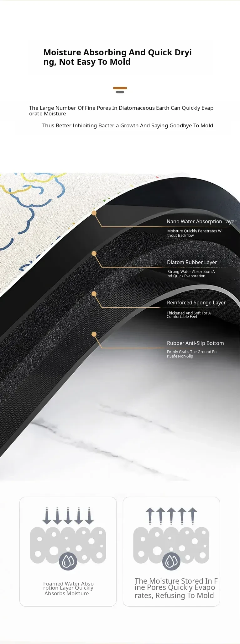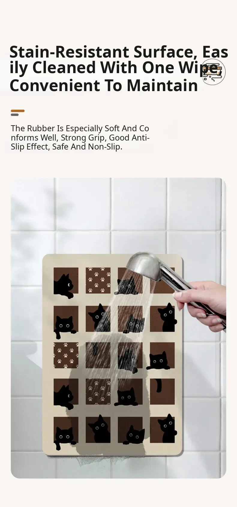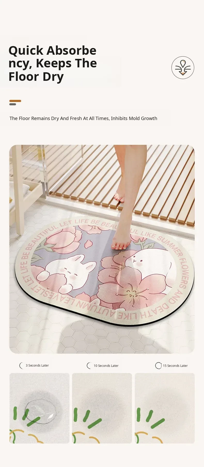 Cute Soft Bath Mat - Quick-Dry Diatomaceous Earth Doormat for Bathroom & Shower Area, Super Absorbent and Comfortable Rug
