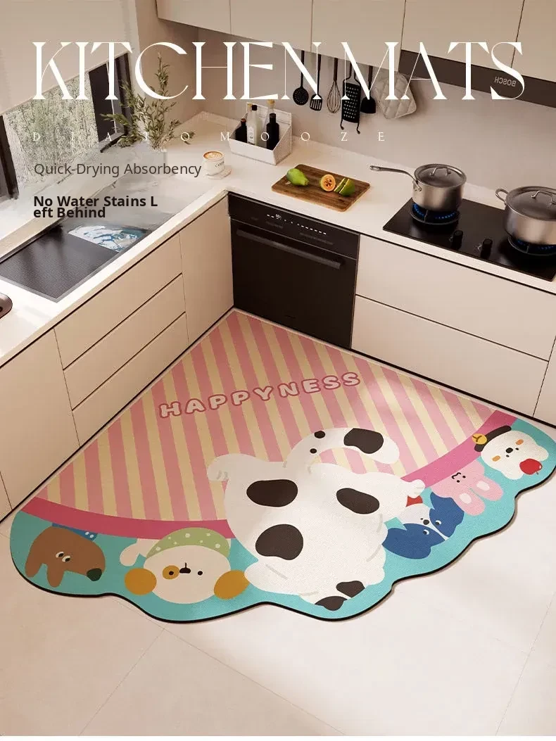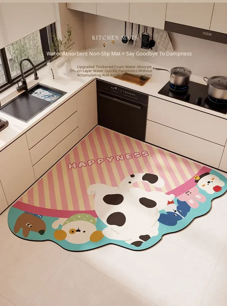 Dopamine Kitchen Corner Shaped Cutting Mat - Absorbent, Non-Slip, Oil-Resistant, and Easy to Clean Fan-Shaped Floor Mat