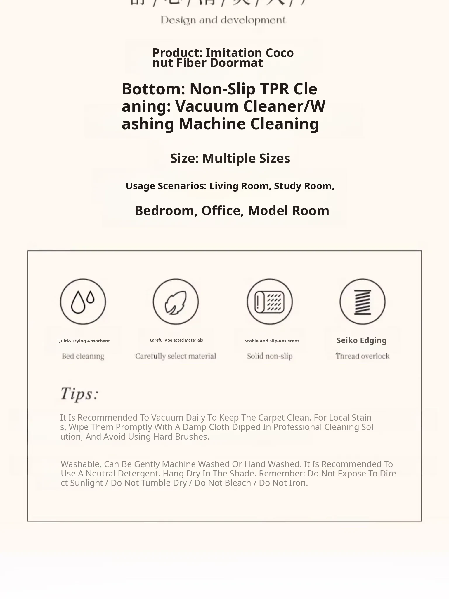 Durable Coconut Fiber Style Doormat for Home Use - Non-Slip, Easy-Clean Outdoor Entrance Rug, Perfect for Export!