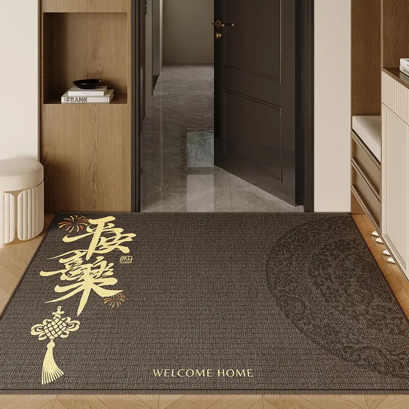 Elegant Black Non-Slip Entrance Mat for New Chinese Style Home - Premium Quality Doorway Carpet for Hallway and Entryway, Perfect for Enhancing Your Home's Aesthetic