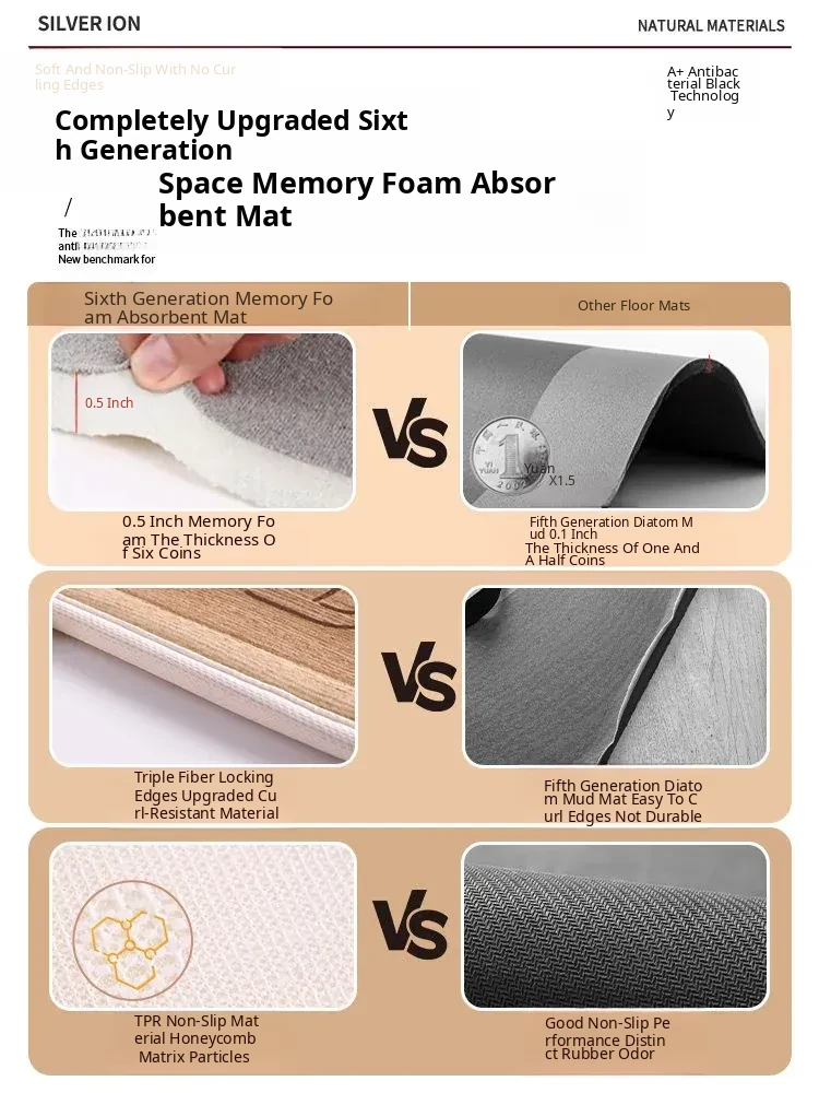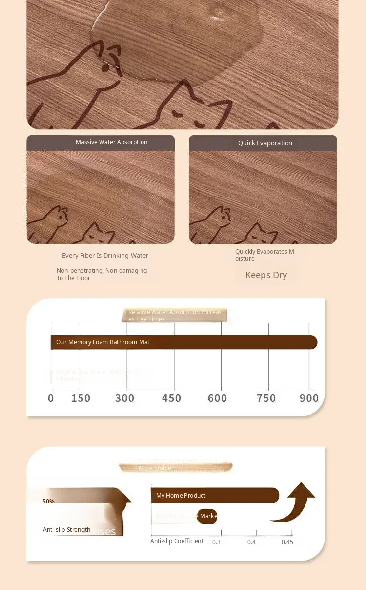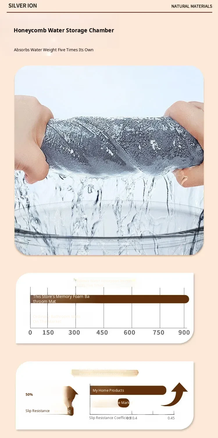 Extra Thick Absorbent Bath Mat - Soft Foam Bathroom Rug for Home, Dirt-Resistant Door Mat, Non-Slip Toilet Entrance Carpet