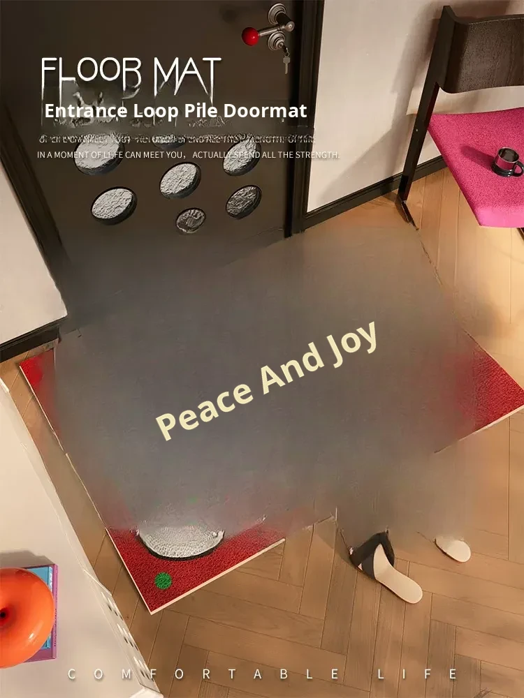 Festive Red Entrance Door Mat for New Year - Cheerful and Safe Home Entry Carpet, Non-Slip Silk Loop Doormat Perfect for Your Home