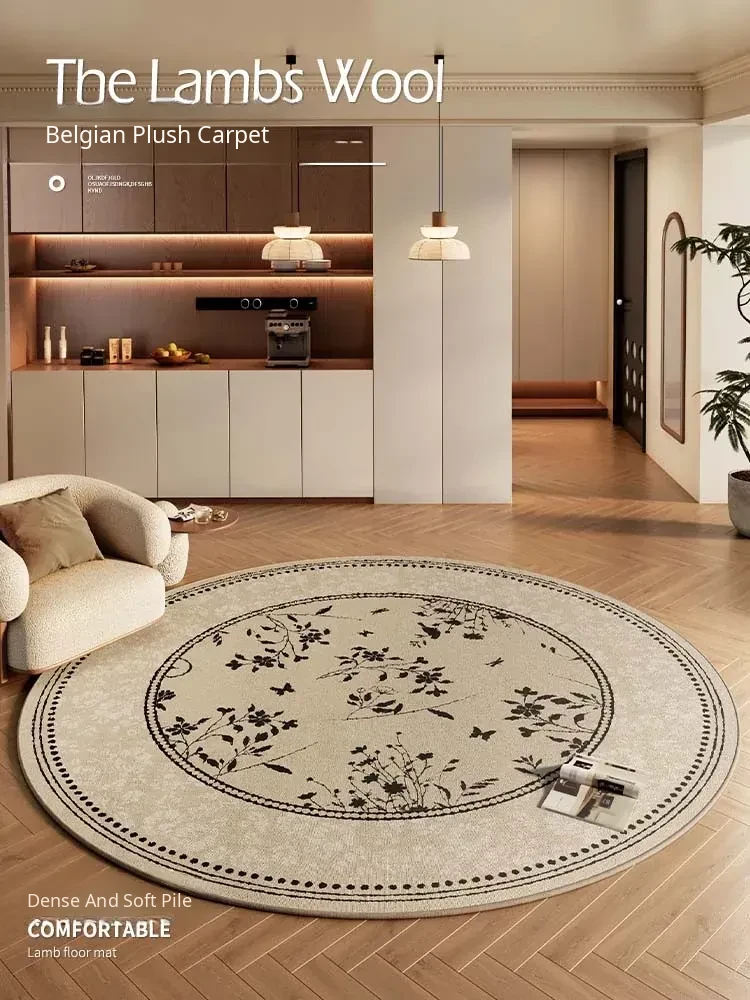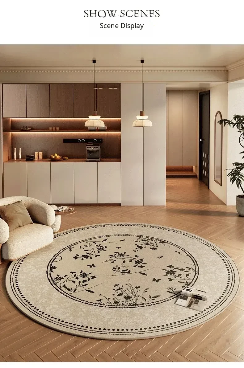 French Round Living Room Carpet - Elegant and Minimalist Design for 2026, Perfect for Coffee Tables, Sofas, Bedrooms, and Bedside Areas. Enhance Your Home Décor with Style!