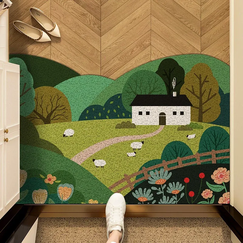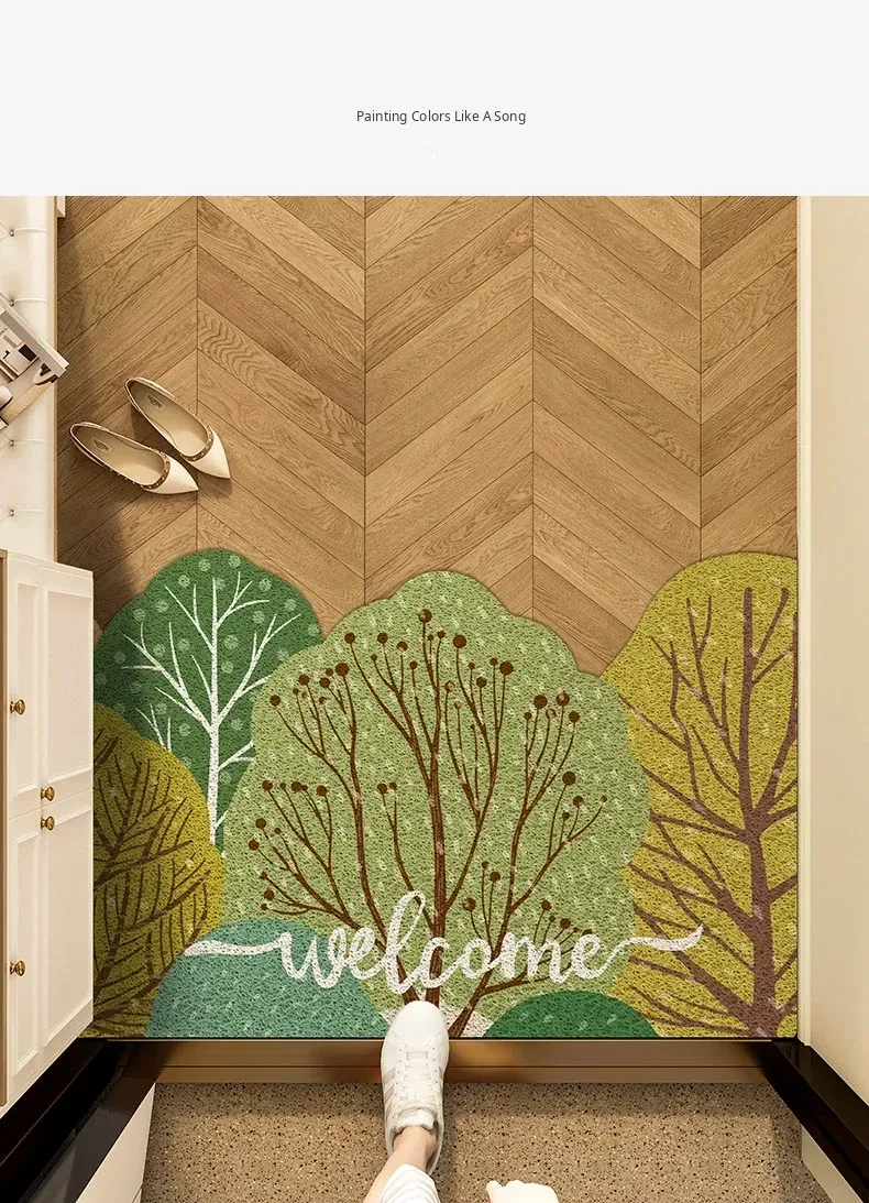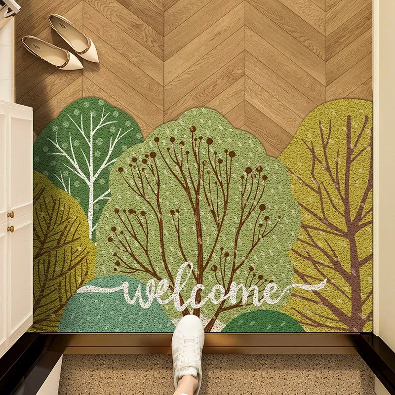 Indoor Entrance Door Mat - Non-Slip Customizable Doorway Rug with Unique Shape, Stylish Green Design, Perfect for Home Entryways, Easy to Cut for a Perfect Fit