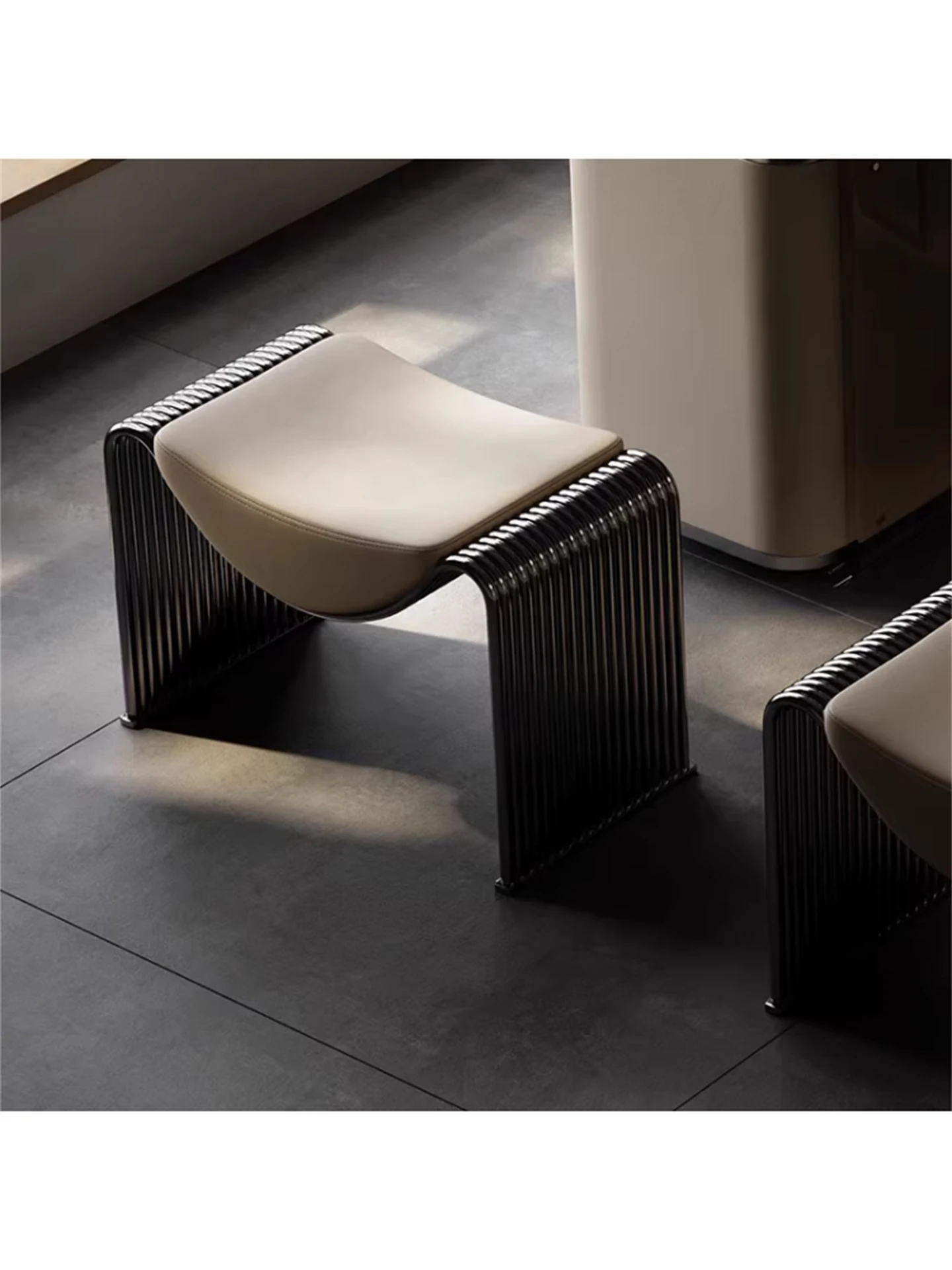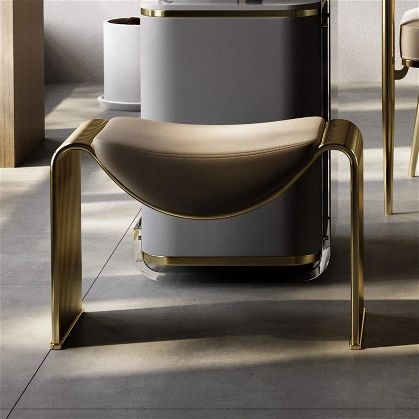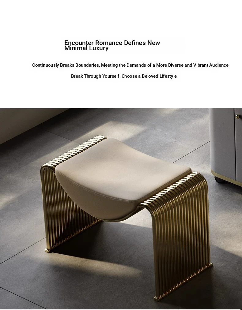 Italian Chic Makeup Stool - Designer Low Stool, Modern Viral Stainless Steel Dressing Chair, Stylish Sofa Bench for Home Use