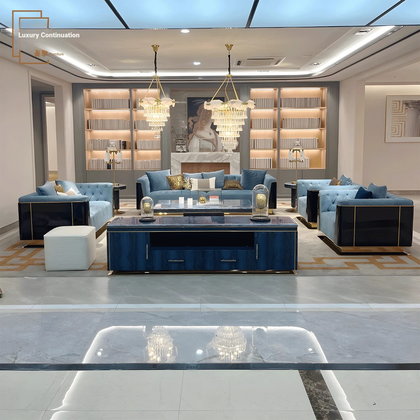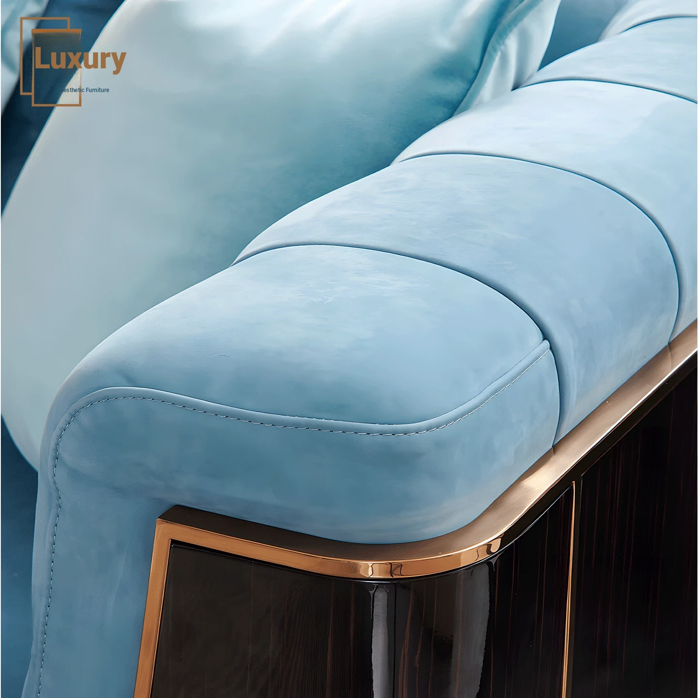Italian Luxury Genuine Leather Sofa Set - Modern Minimalist Design for Spacious High-End Villas and Living Rooms - Premium Solid Wood Furniture