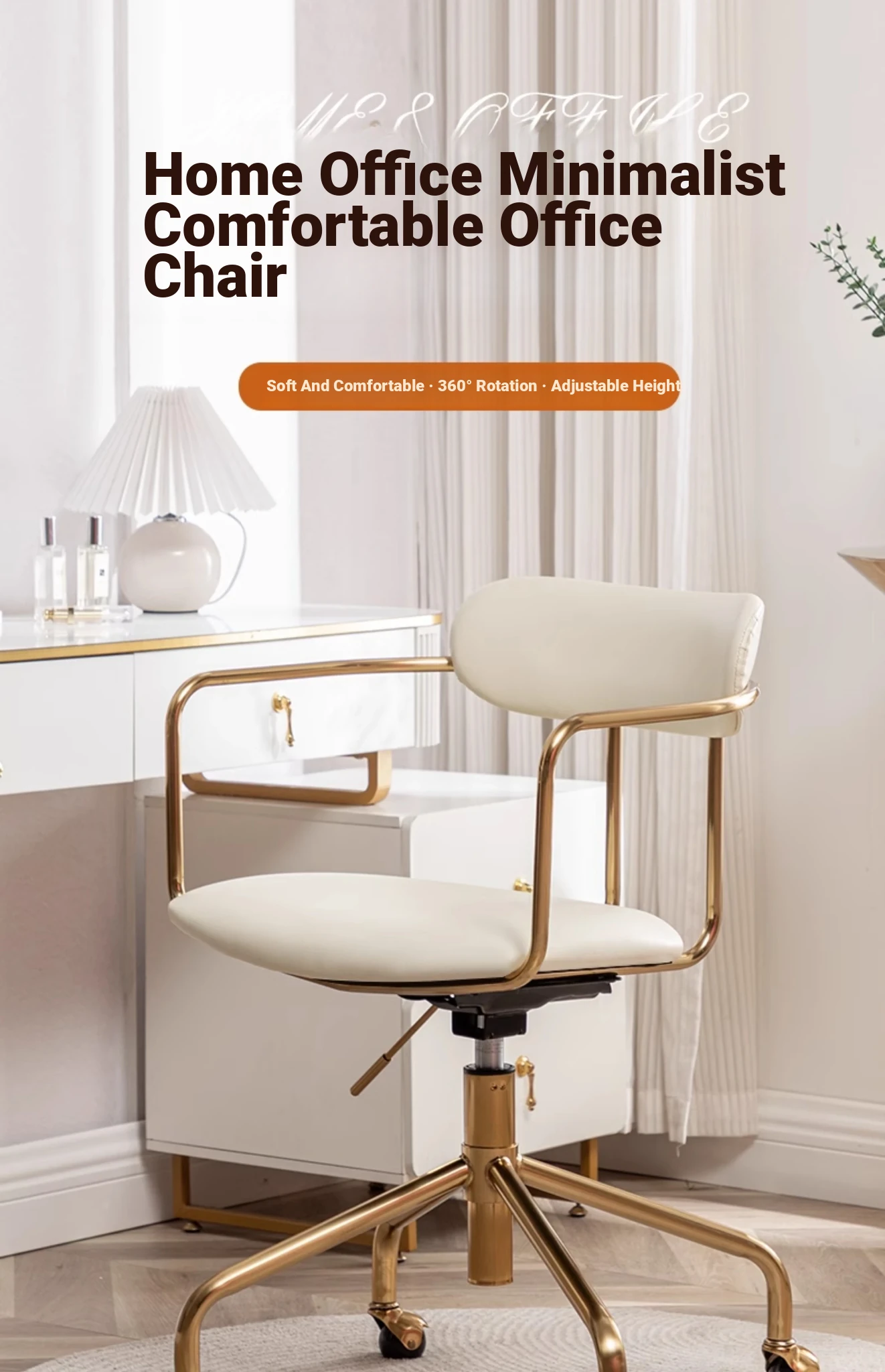 Italian Minimalist Luxury Designer Rotating Makeup Chair - Stylish Home Stool for Bedroom, Study, and Office - Metal Construction for Durability and Elegance