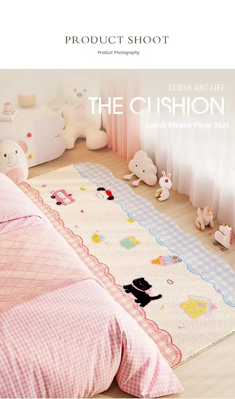 Kids' Stain-Resistant Cartoon Bedside Rug - Long Plush Carpet for Winter, Machine Washable, Thick Floor Mat for Cozy Bedrooms