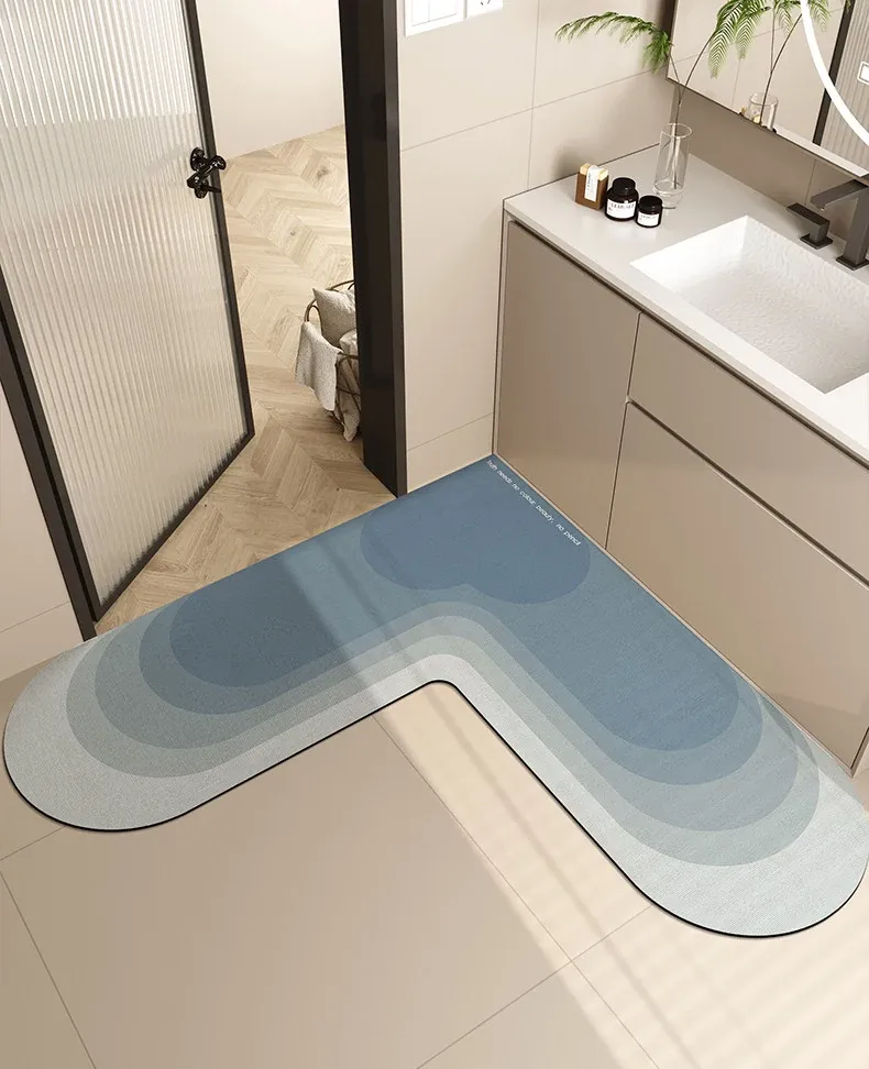 Xunxun Blue Diatom Mud Floor Mat-Rounded L-Shaped
