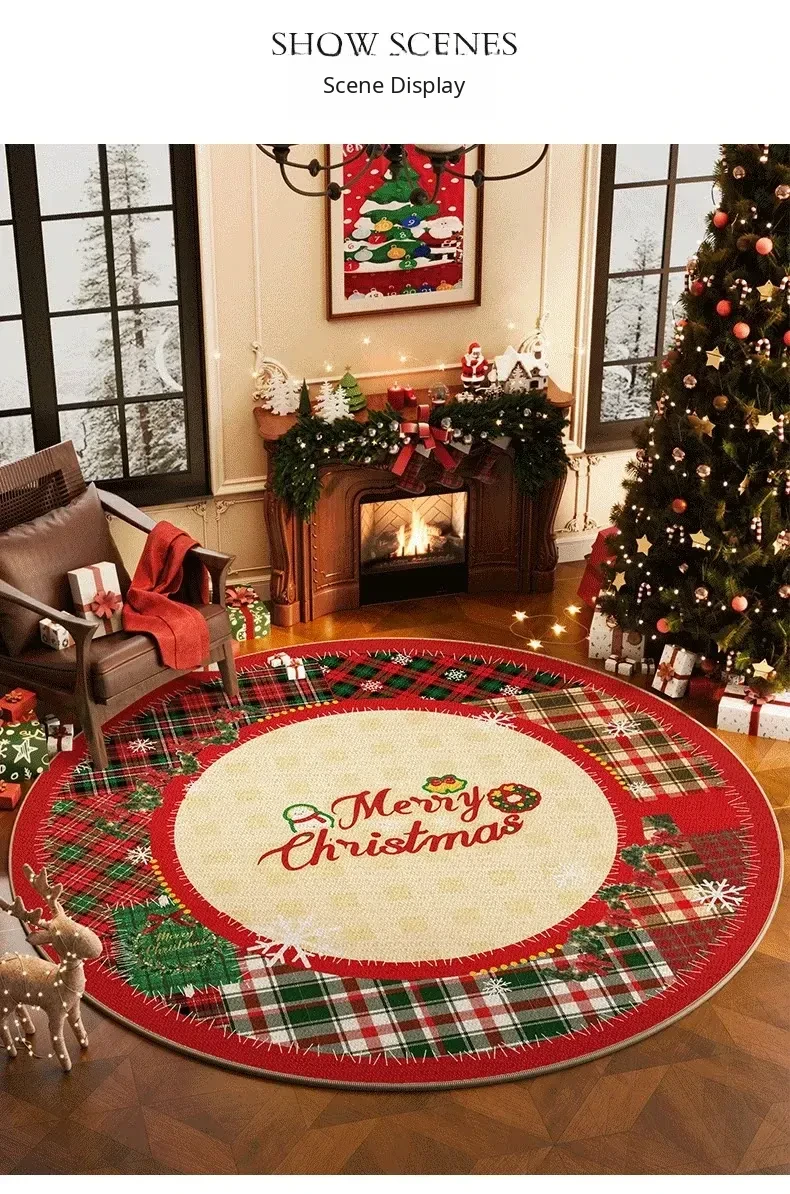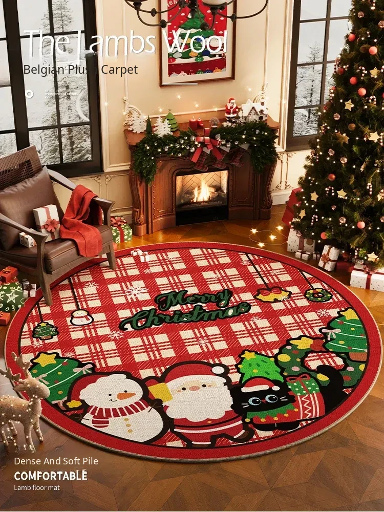 Luxurious Christmas-Themed Round Carpet - Festive Red Area Rug for Living Room Decor, Perfect for Placing Under Your Christmas Tree! Ideal Holiday Decoration for a Cozy Atmosphere.