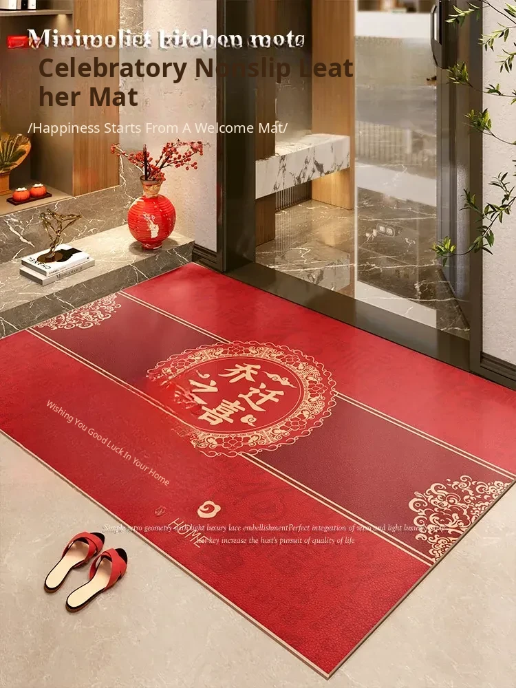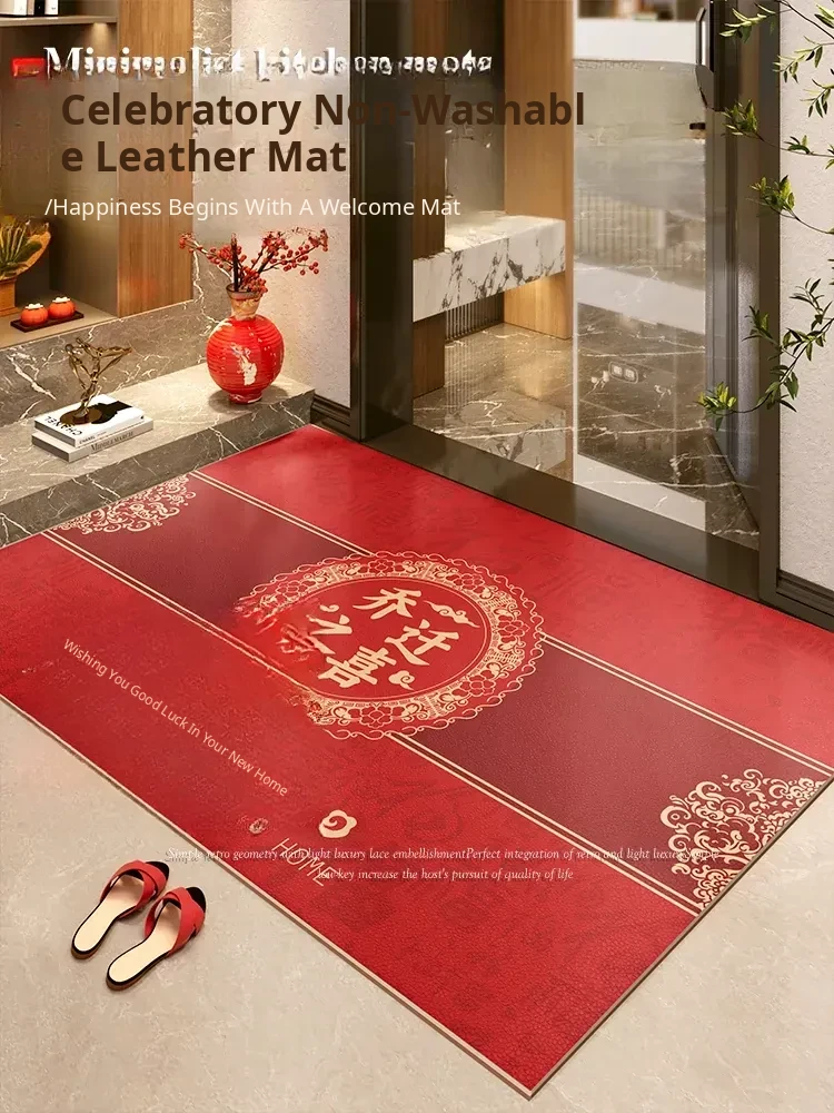 Luxurious Red Leather Entrance Mat - No Wash Needed, Perfect for New Homes! Celebrate Your Move with a Stylish, Easy-Clean Door Mat for Your New Entryway!
