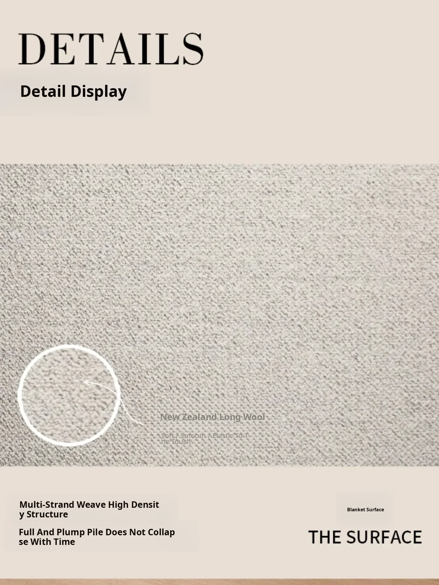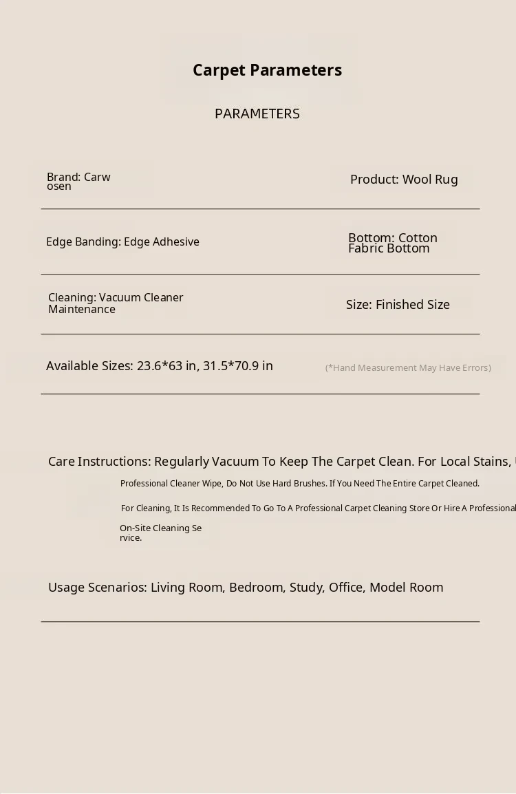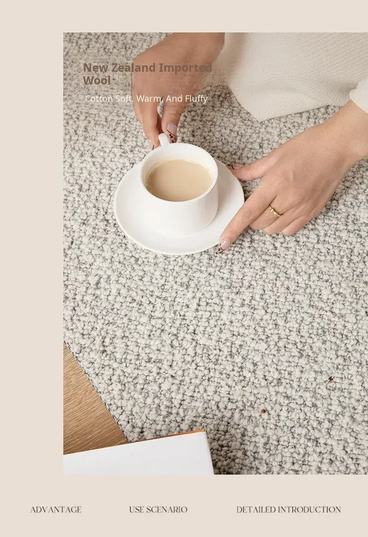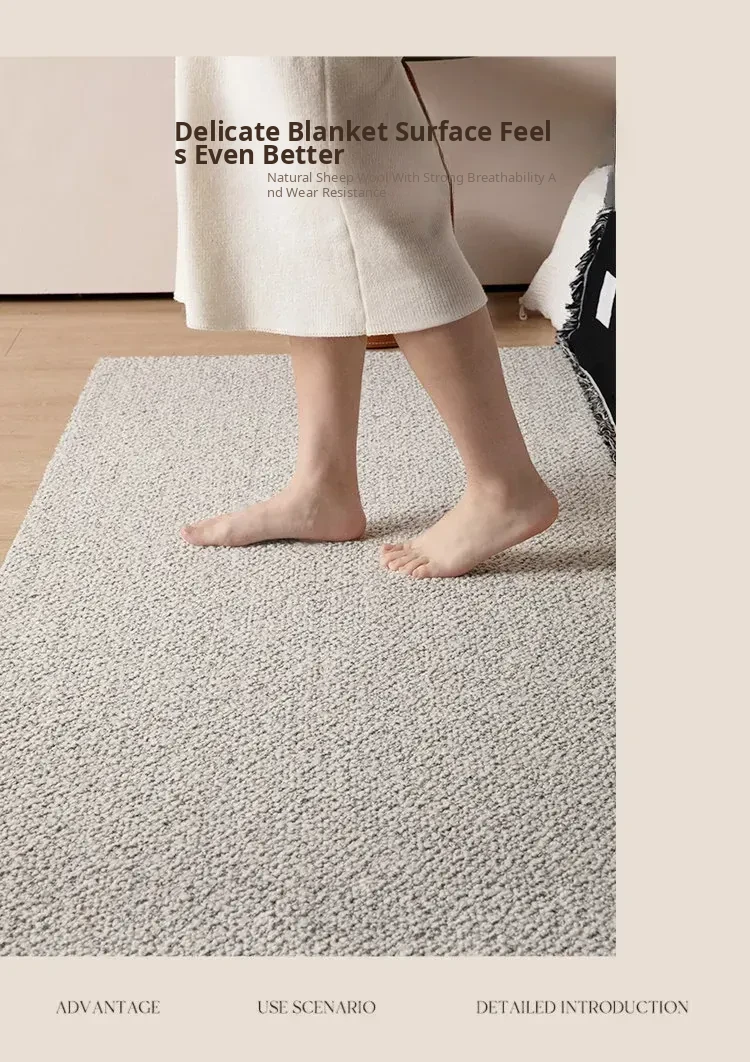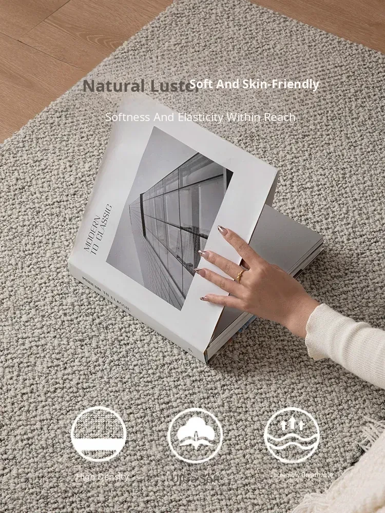 Luxury New Zealand Imported Wool Rectangular Area Rug - Minimalist Style for Bedroom & Study, Elegant Soft Carpet for Living Room