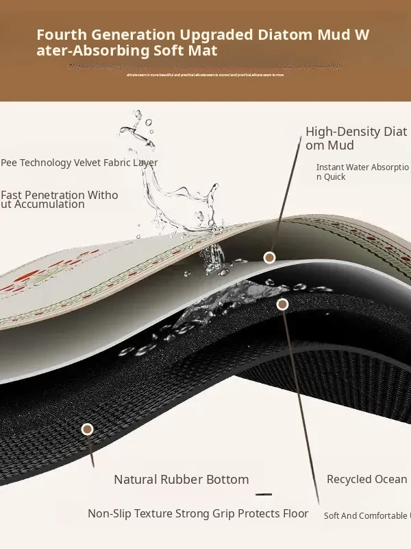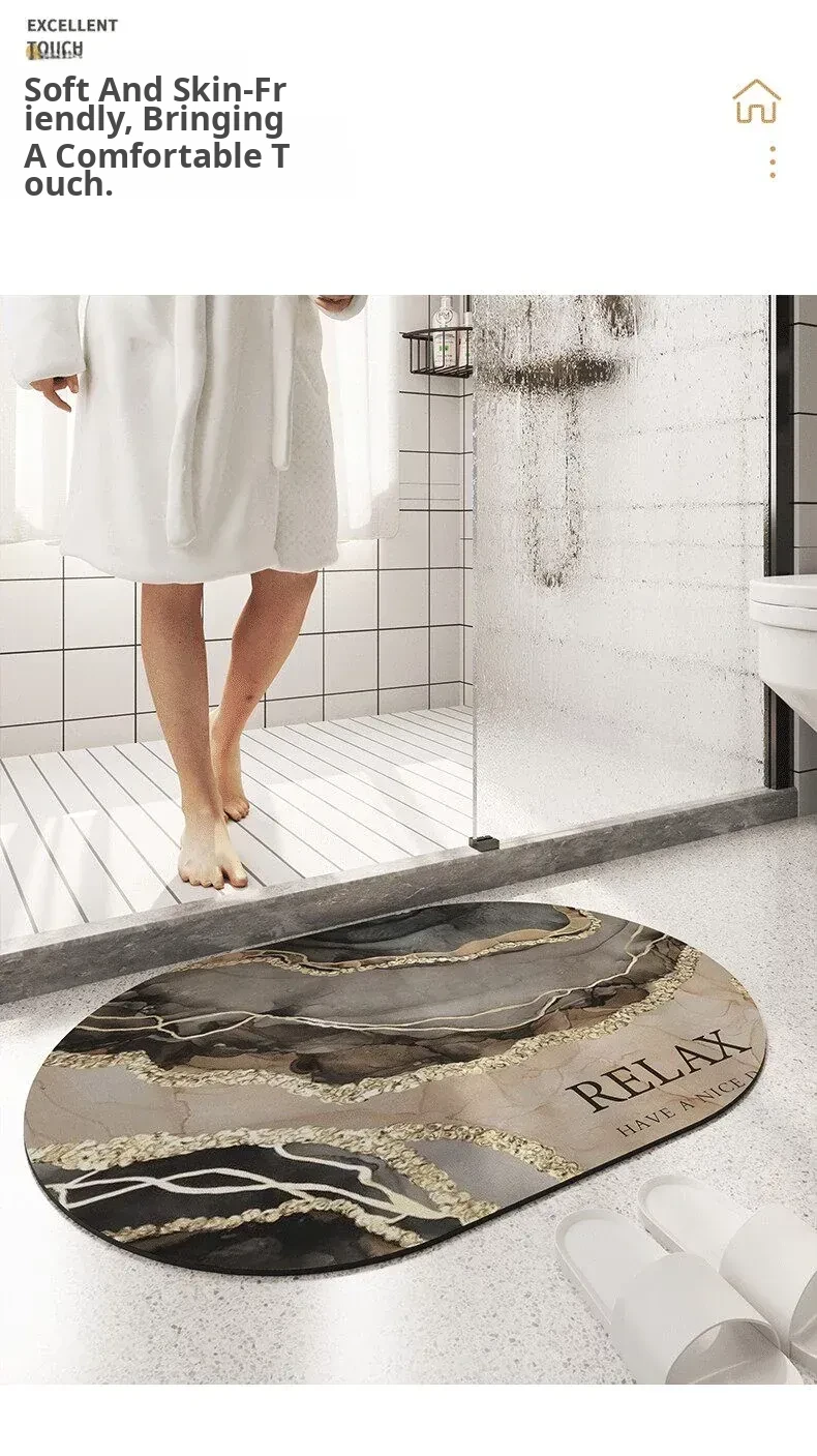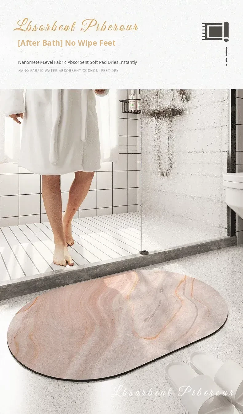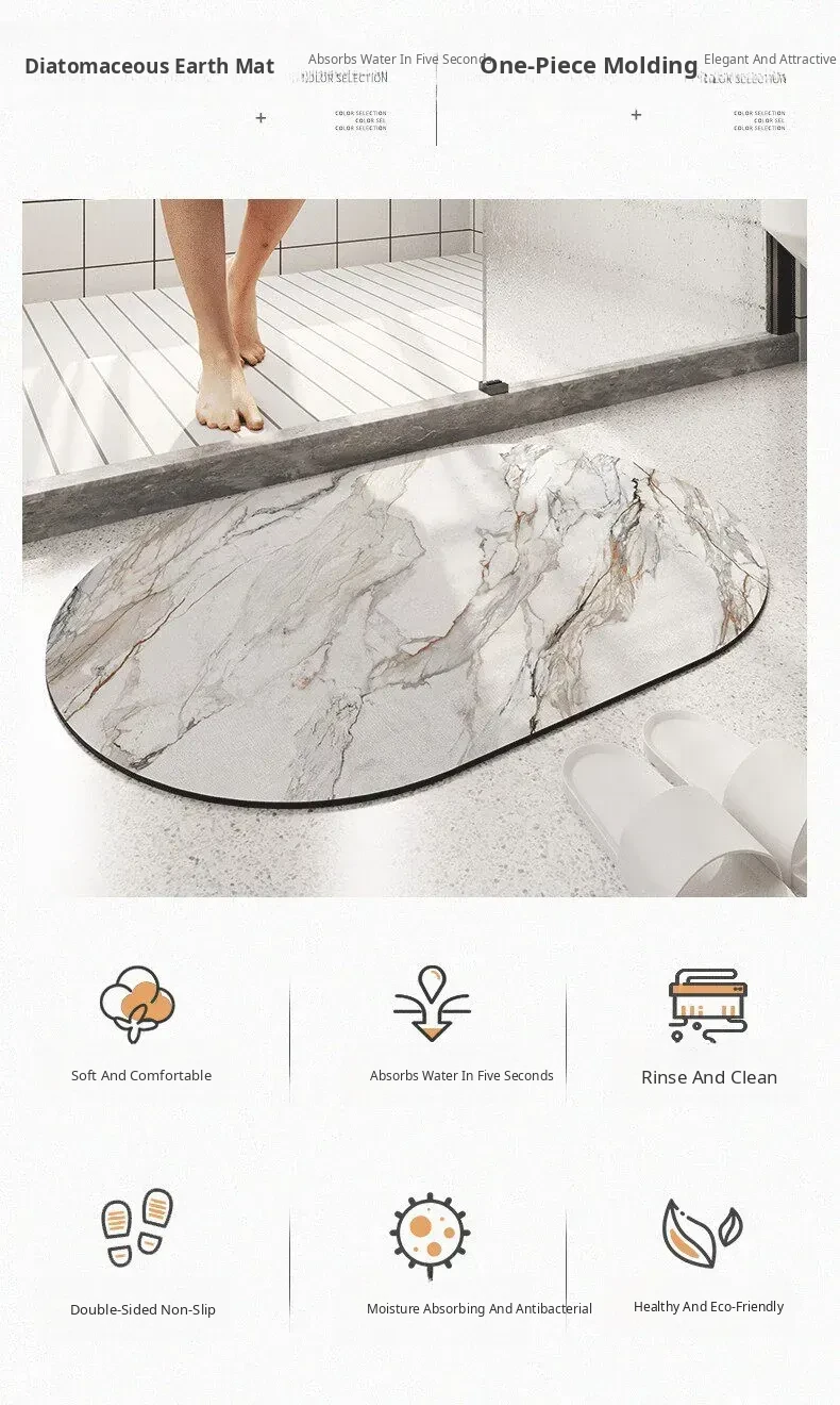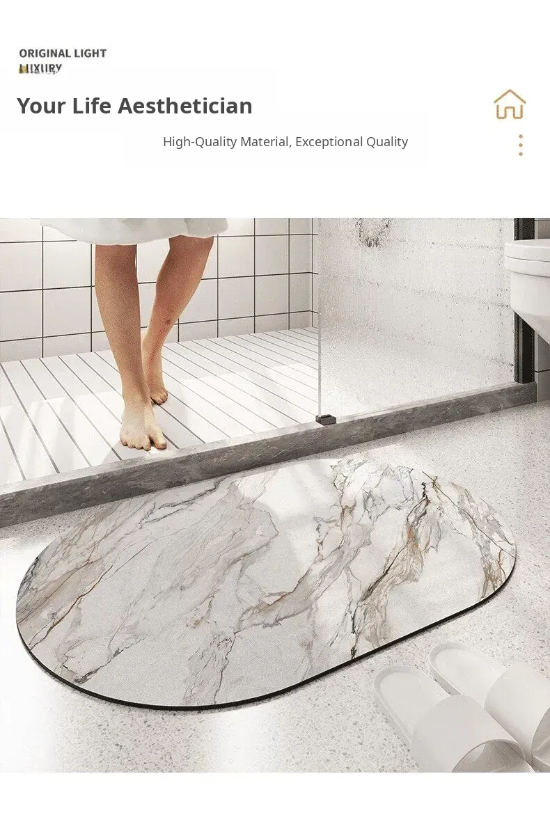 Marble Pattern Bathroom Entrance Mat - Soft, Absorbent Diatomaceous Earth Bath Rug with Non-Slip Oval Design for Ultimate Comfort and Safety