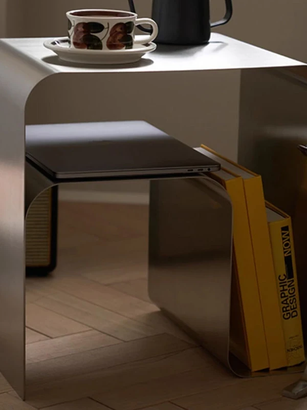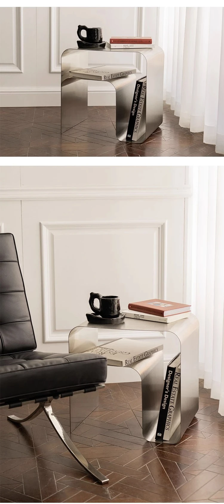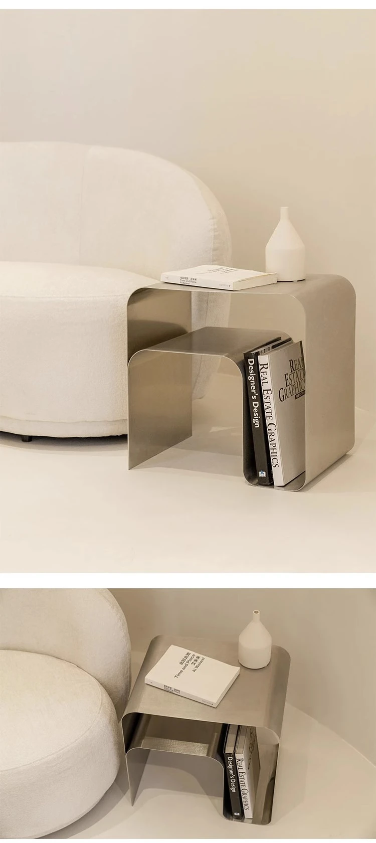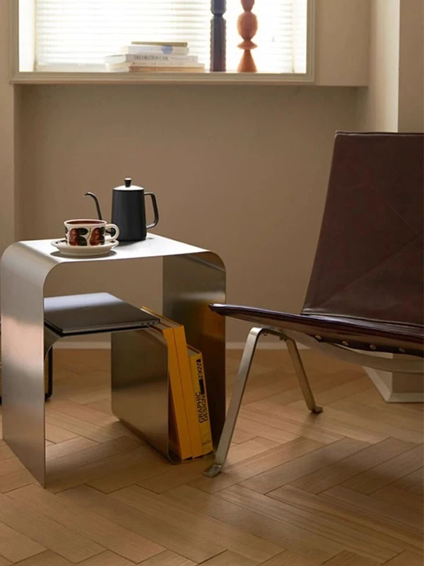 Minimalist Industrial Style Storage Coffee Table - Ins-Style Low Stool for Living Room, Solid Stainless Steel Metal Side Table, Versatile Small Stool for Sofa Area