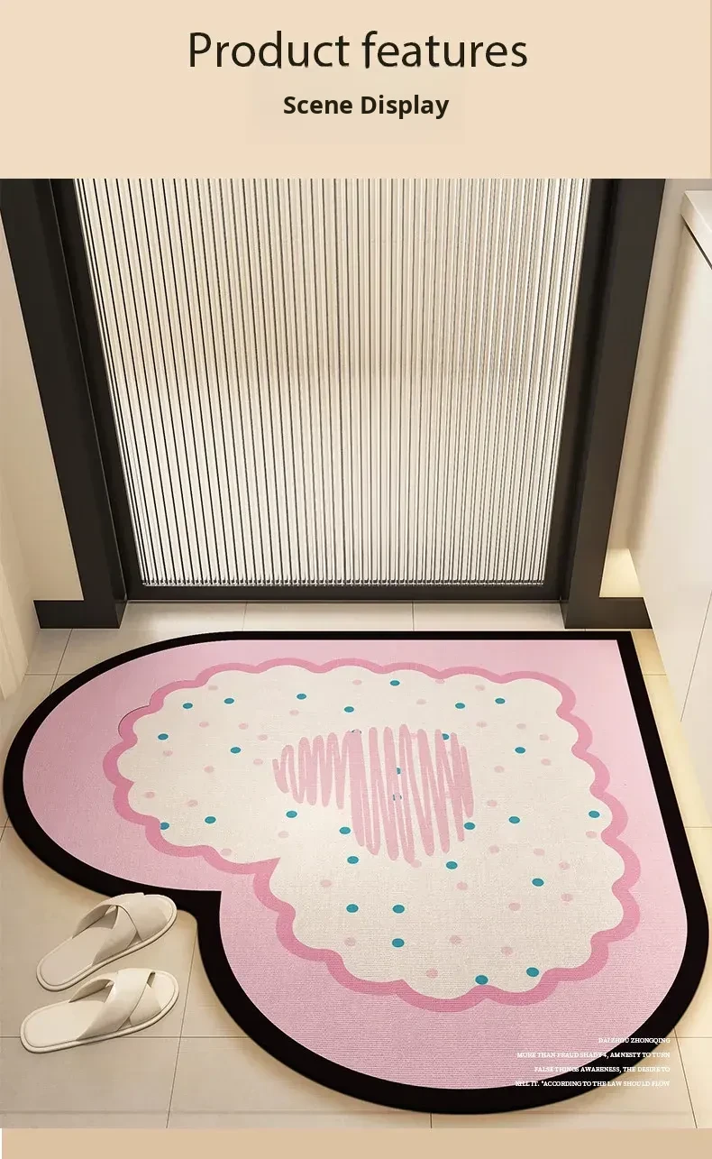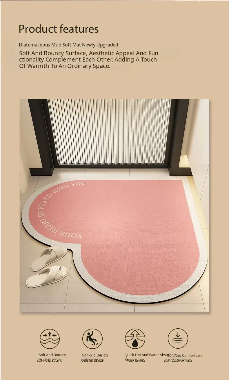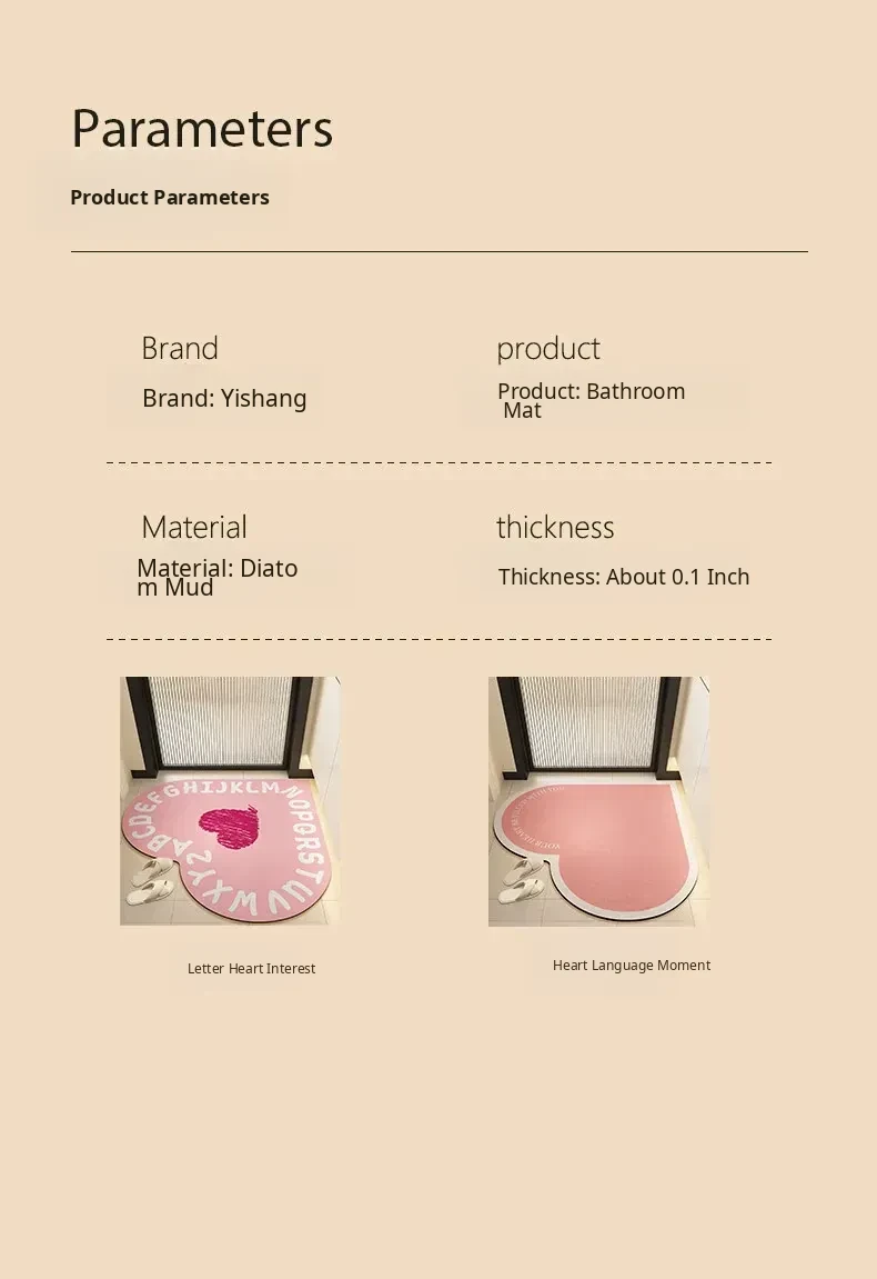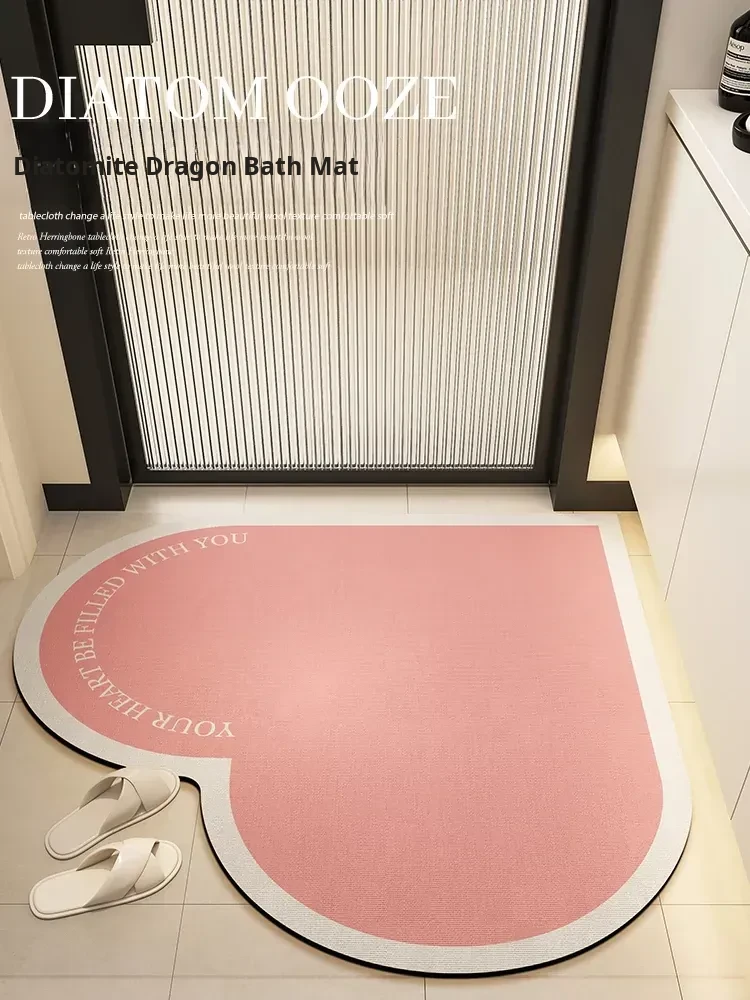 Pink Heart-Shaped Bathroom Door Mat - Quick-Dry, No-Wash, Non-Slip Diatomaceous Earth Carpet for Toilets - Perfect for a Stylish and Safe Bathroom Experience!