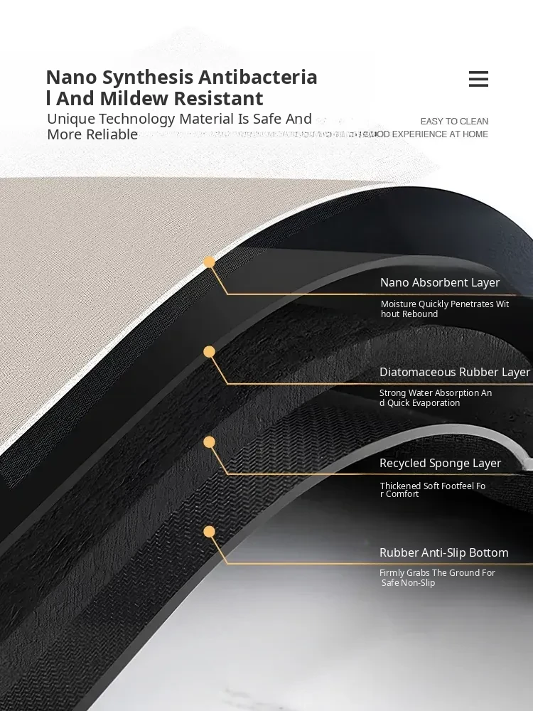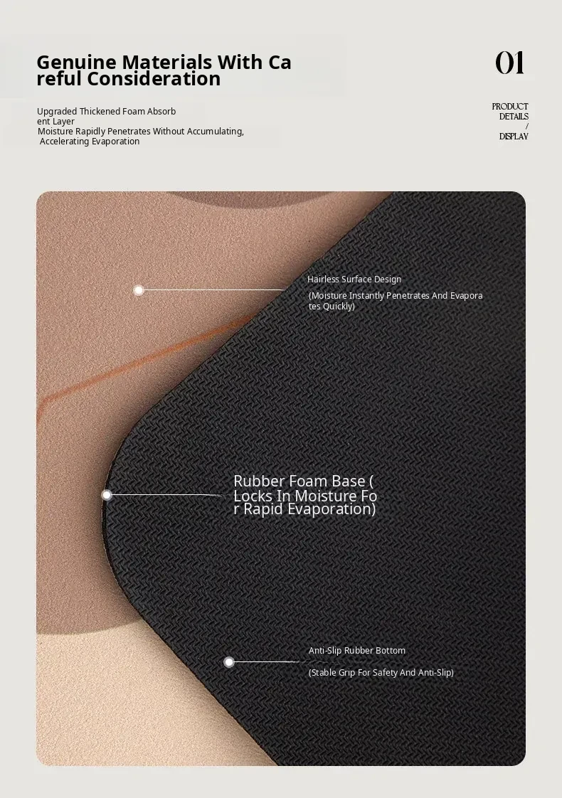 Quick-Dry Diatomaceous Earth Bath Mat - Non-Slip Bathroom Rug for Home Use, Super Absorbent, Easy-Clean Toilet Door Mat