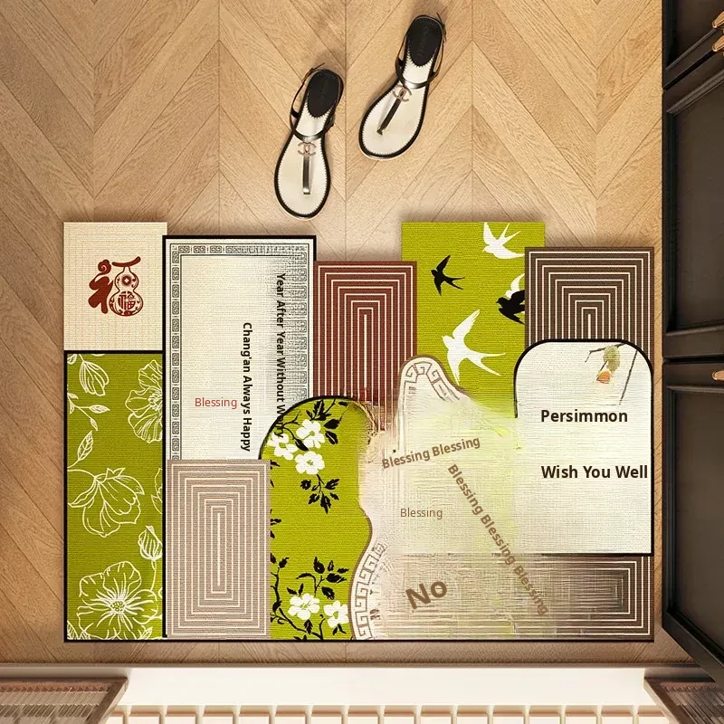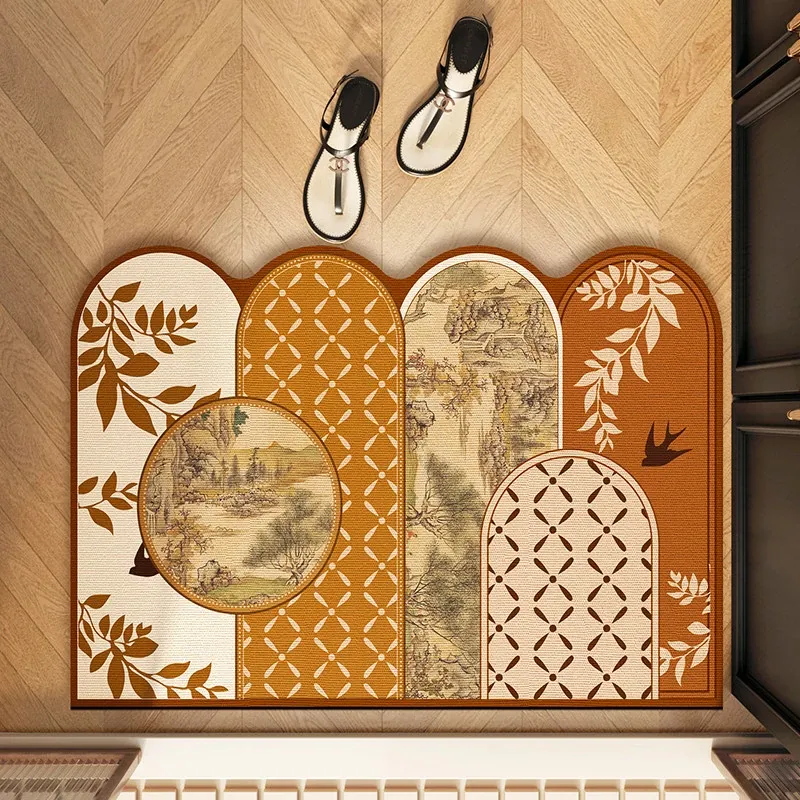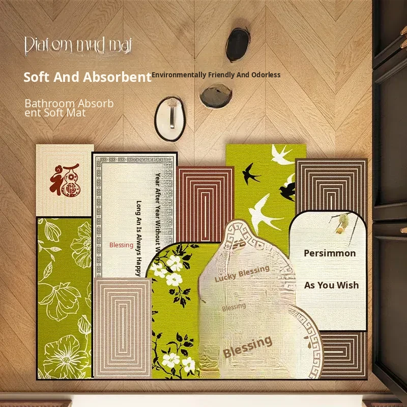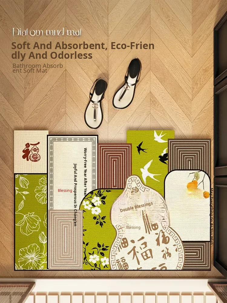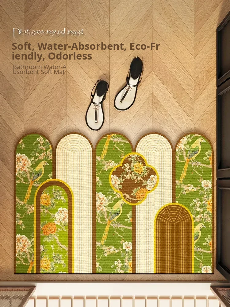 Quick-Dry Water Absorbent Bathroom Mat - Non-Slip, Easy-Care Rug in New Chinese Style, Customizable Size for Splash Control and Comfort