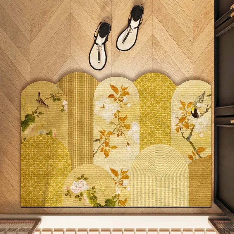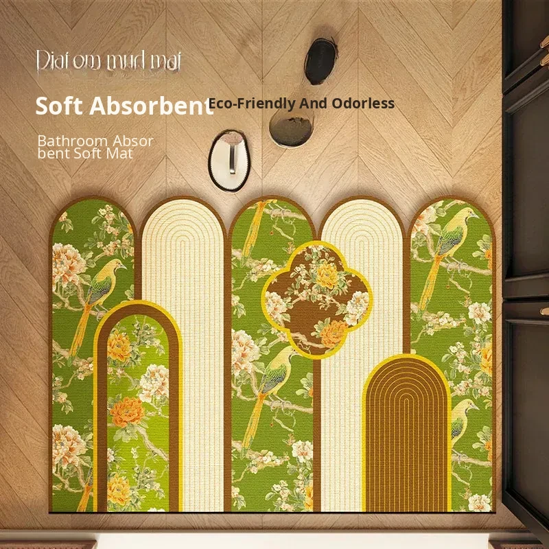 Flower and Bird Screen Diatom Mud Bathroom Floor Mat-Special Shape