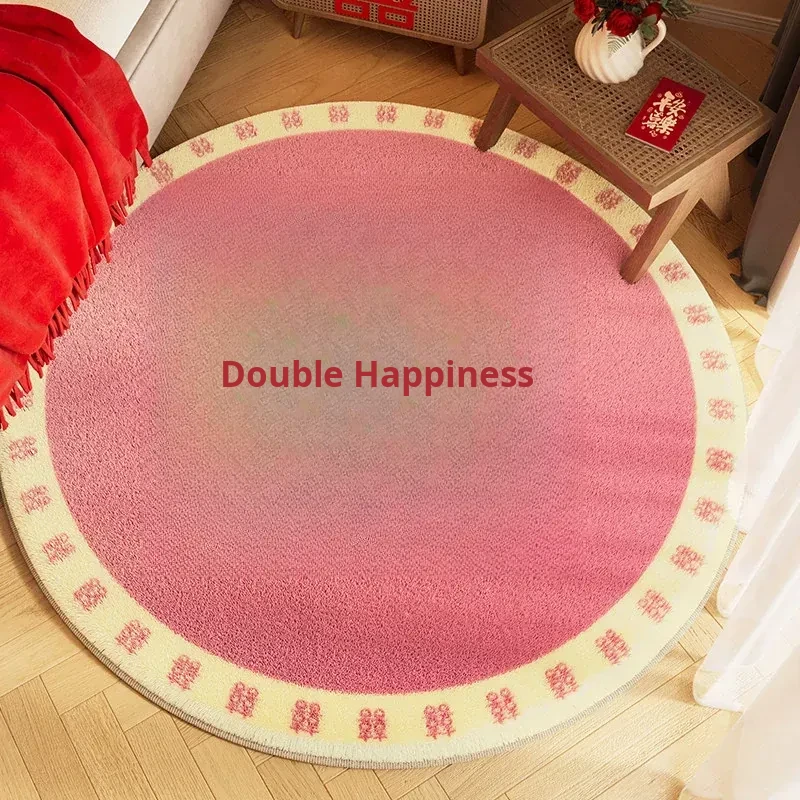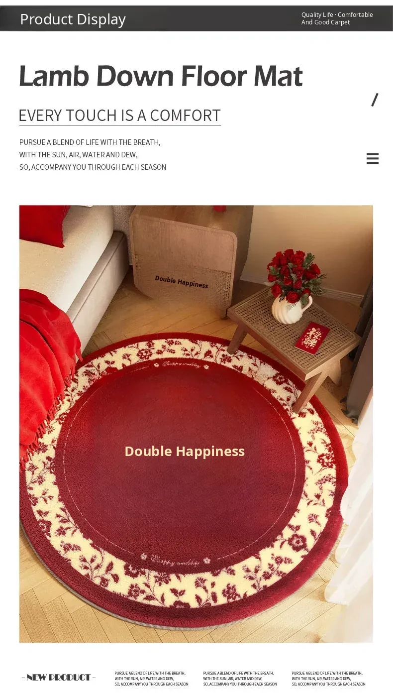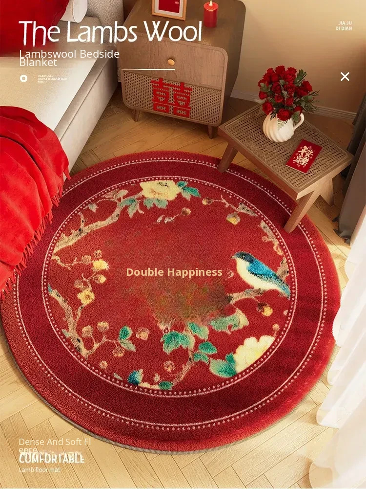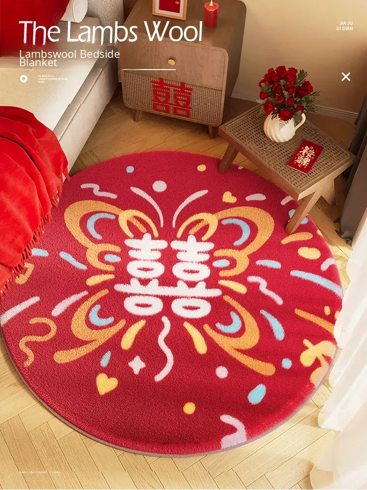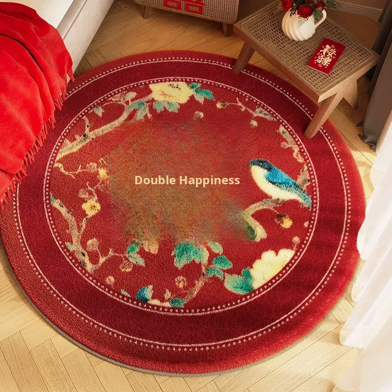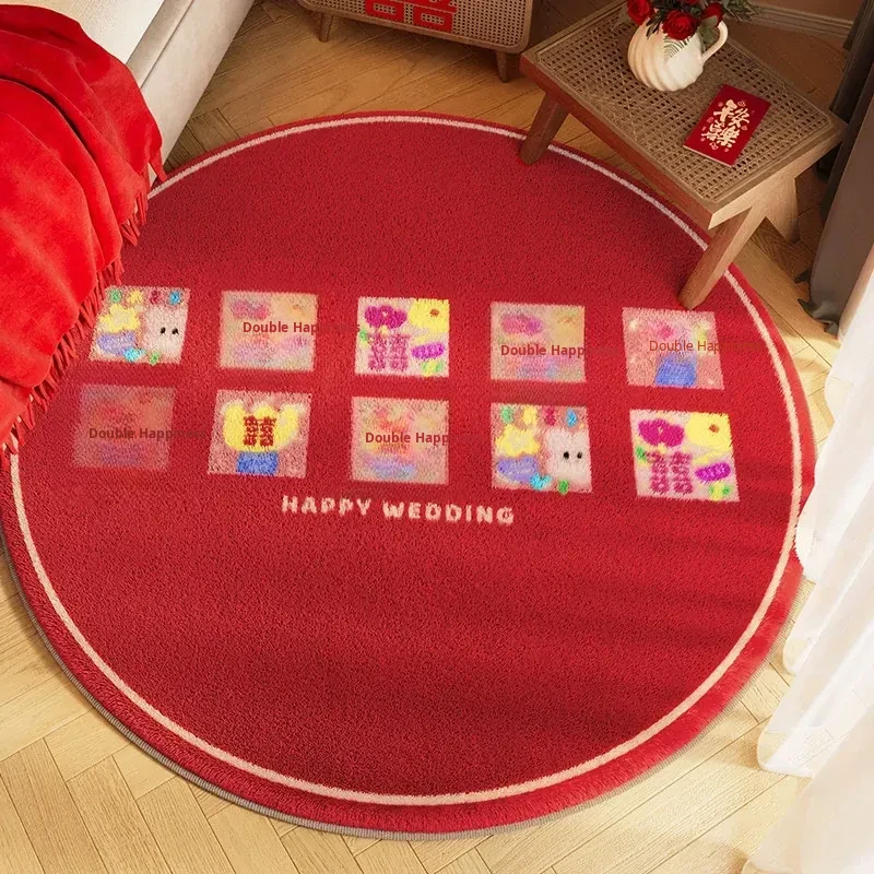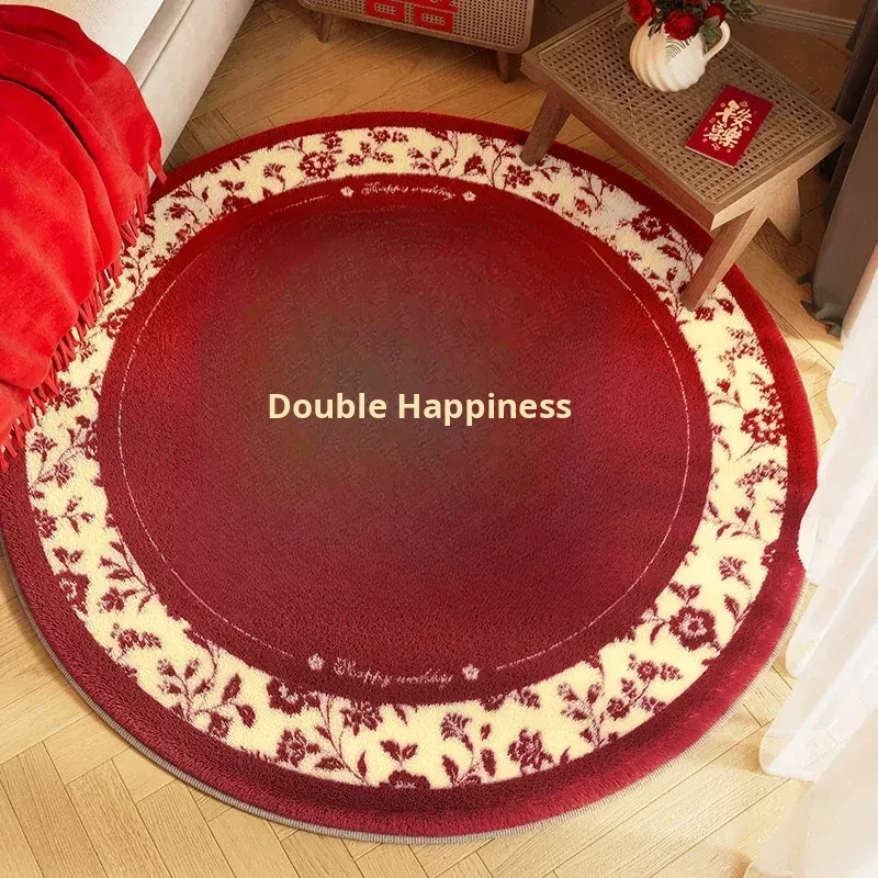 Red Wedding Carpet Round Vanity Foot Mat - Festive Chinese Decor Rug for Newlyweds, Creating Romantic Atmosphere in Your Home