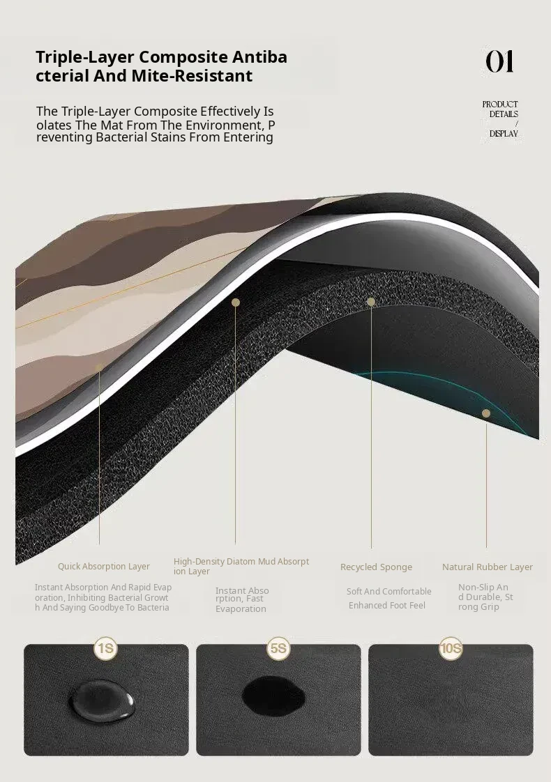 Super Absorbent Diatomaceous Earth Bath Mat – Non-Slip Soft Bathroom Rug for Entrance – Ideal for Toilet and Washroom Use, Perfect for Keeping Floors Dry and Safe!