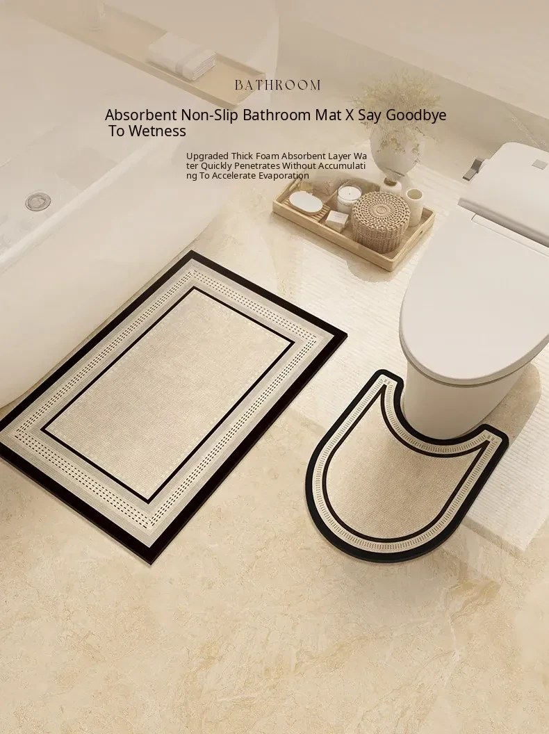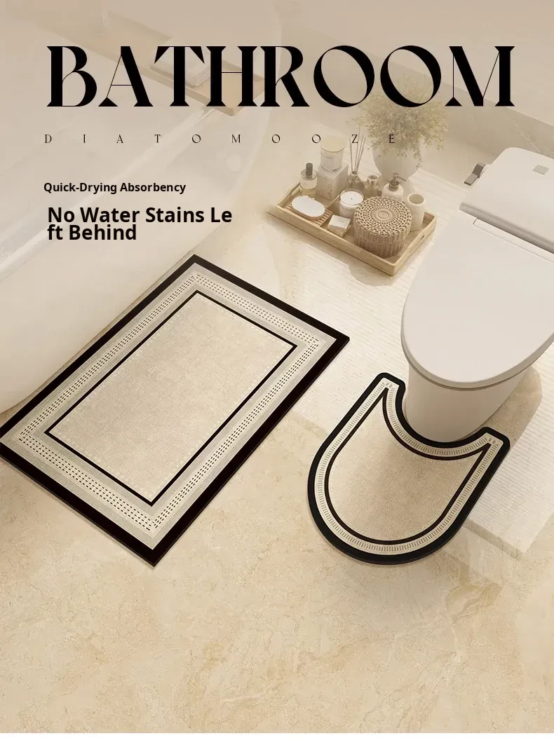 Super Absorbent Diatomaceous Earth Bathroom Mat Set – U-Shaped Toilet Edge Rug, Non-Slip and Quick-Drying Shower Mat for a Clean and Safe Bathroom Experience!
