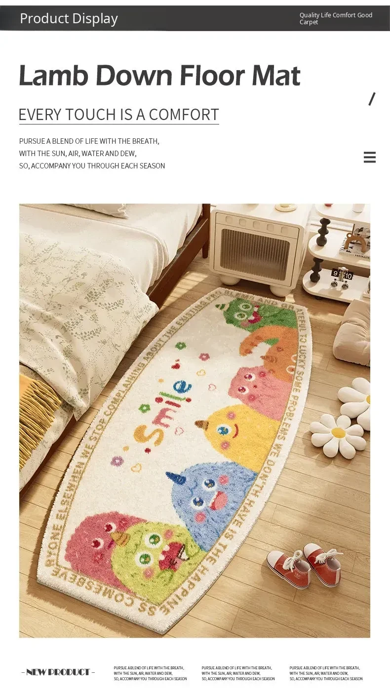 Surfboard Shaped Area Rug for Kids - Cute Cartoon Plush Carpet for Bedroom or Bedside, Non-Slip and Easy-Care Floor Mat