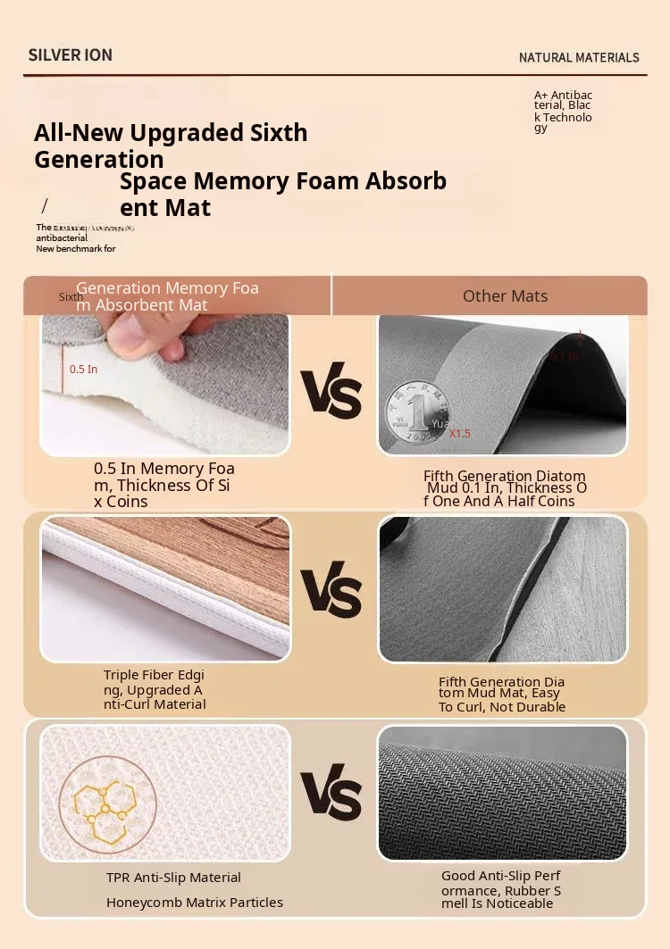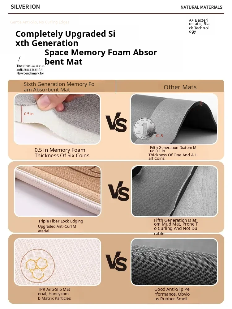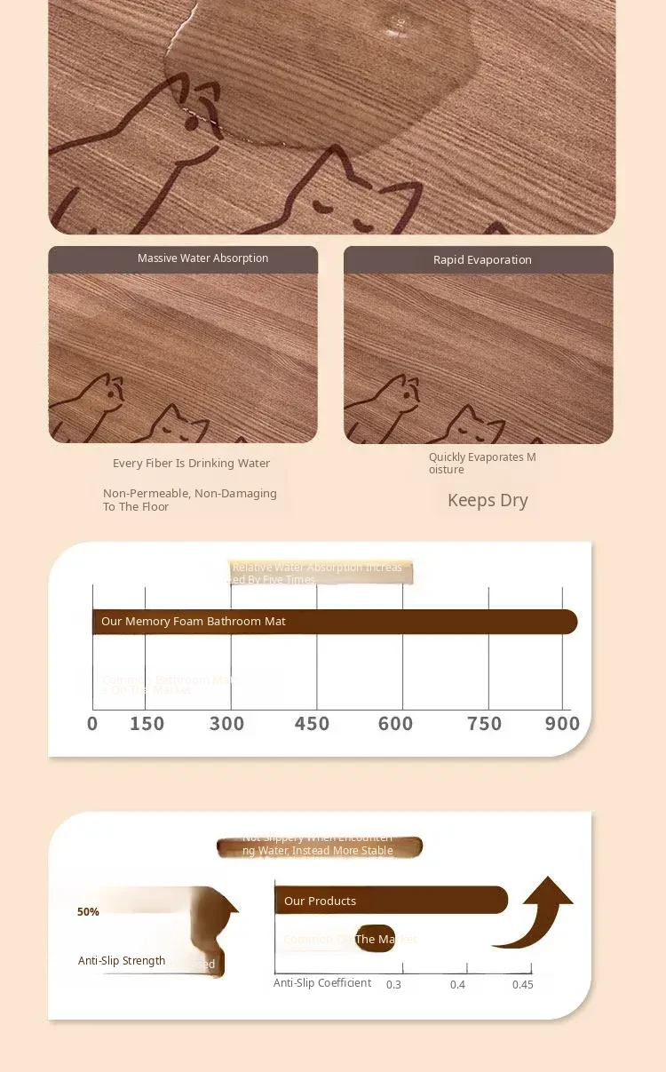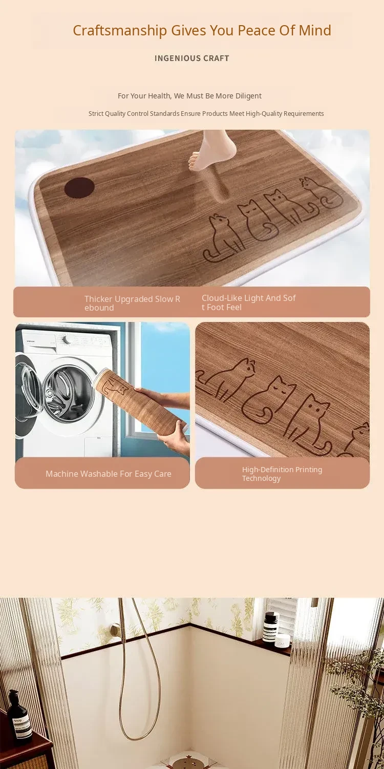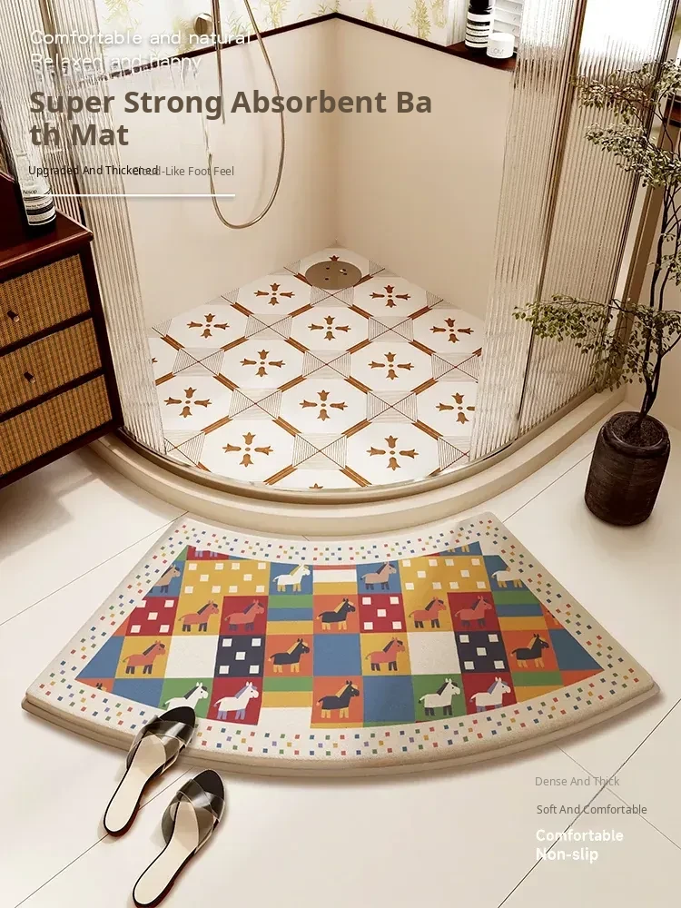 Thick Memory Foam Arc-Shaped Bath Mat - Anti-Slip, Water-Absorbent Carpet for Shower Rooms and Bathroom Entrances, Perfect for Comfort and Safety