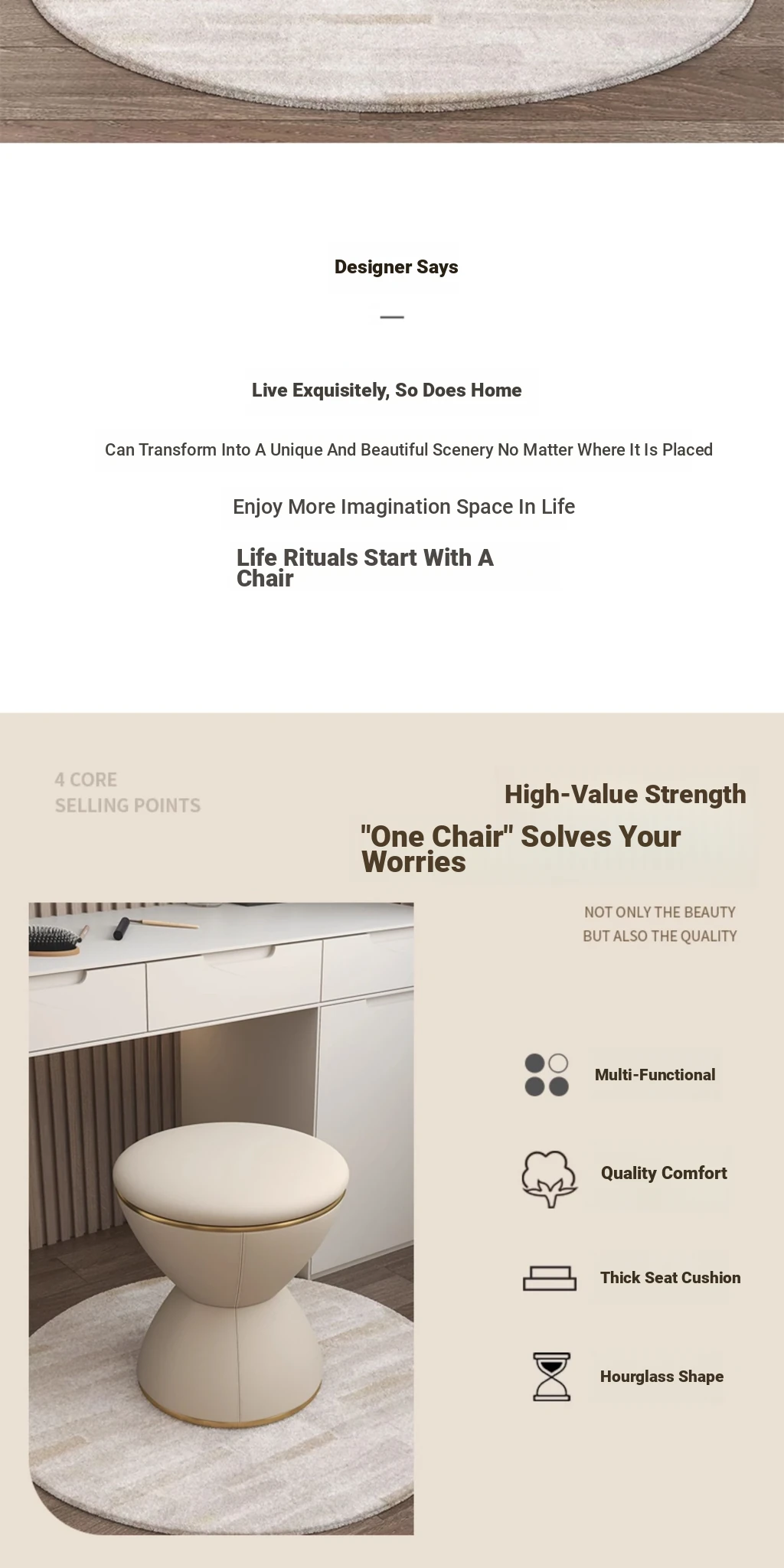 Trendy Minimalist Makeup Stool - Elegant Vanity Chair for Home Use, Perfect for Girls' Bedrooms, Hourglass Design for a Touch of Luxury