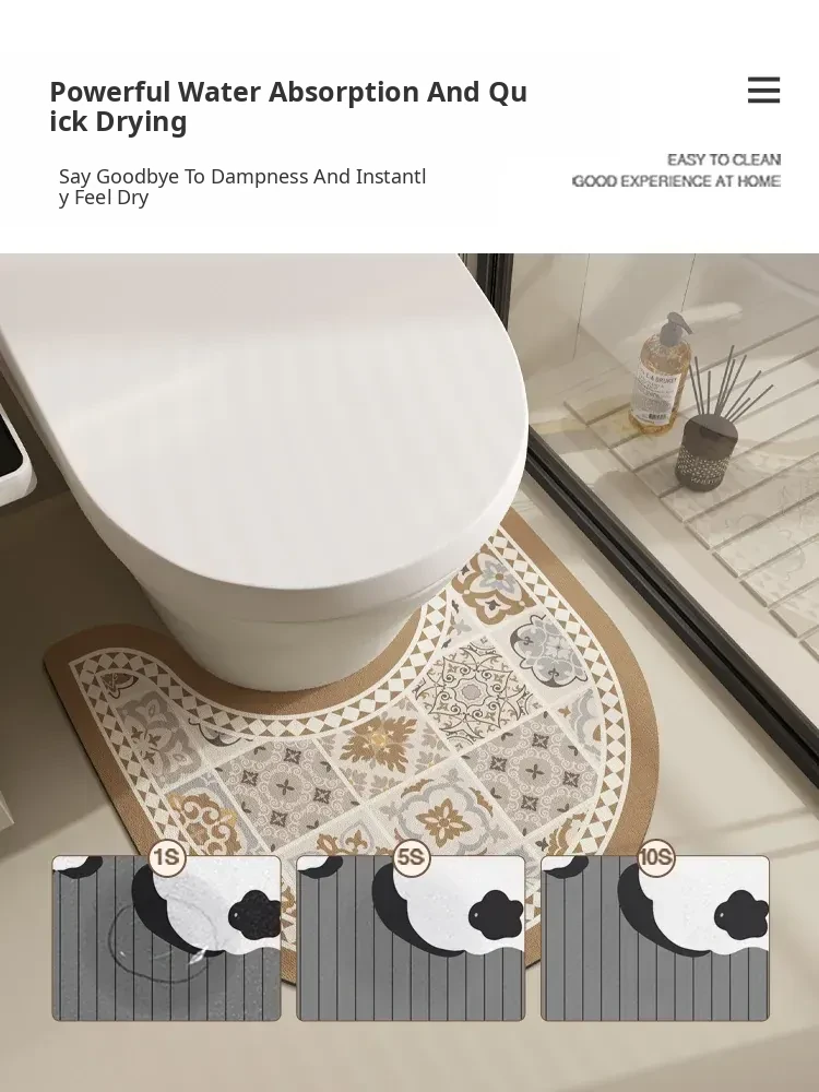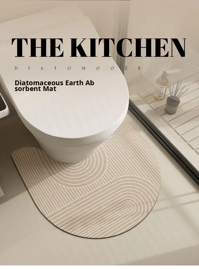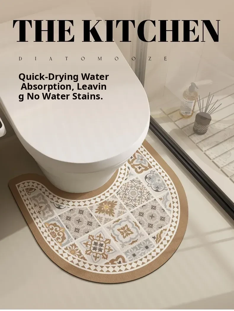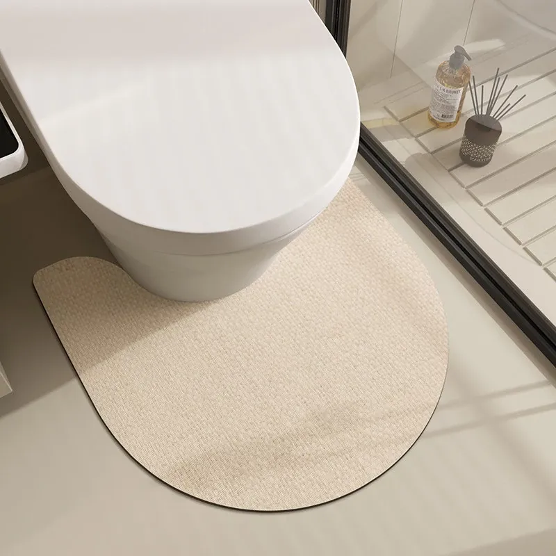 U-Shaped Diatom Mud Toilet Mat - Quick-Dry, Absorbent Bathroom Rug, Stain-Resistant Non-Slip Floor Mat for Hygienic and Stylish Restrooms