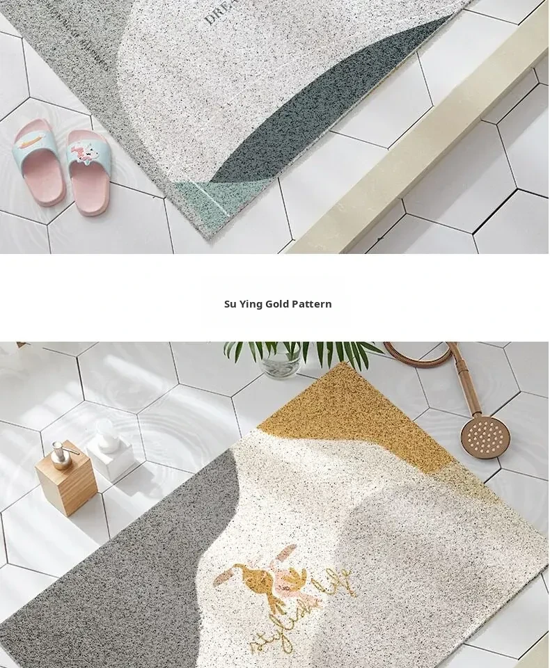 Su Ying Gold Pattern Bathroom Silk Circle Floor Mat