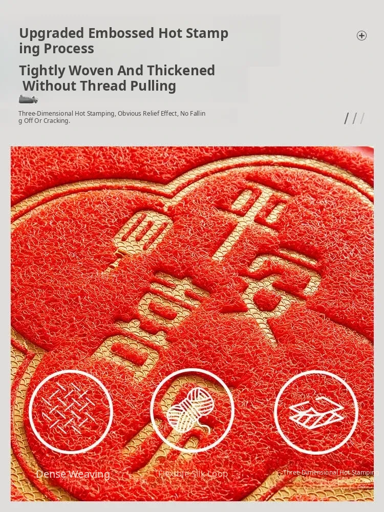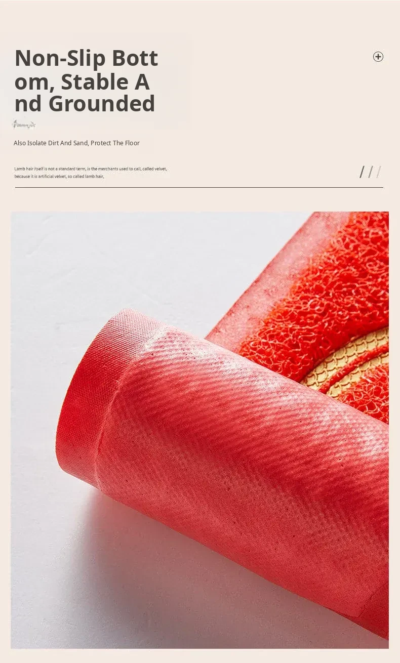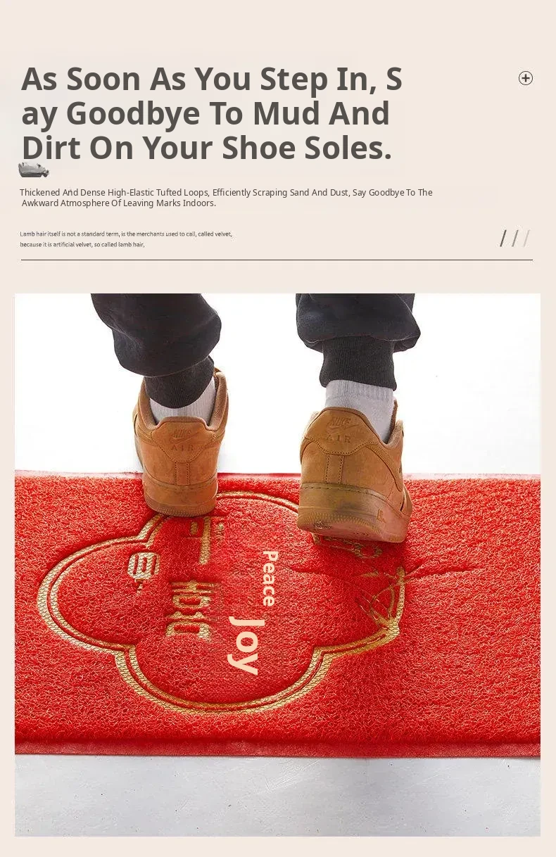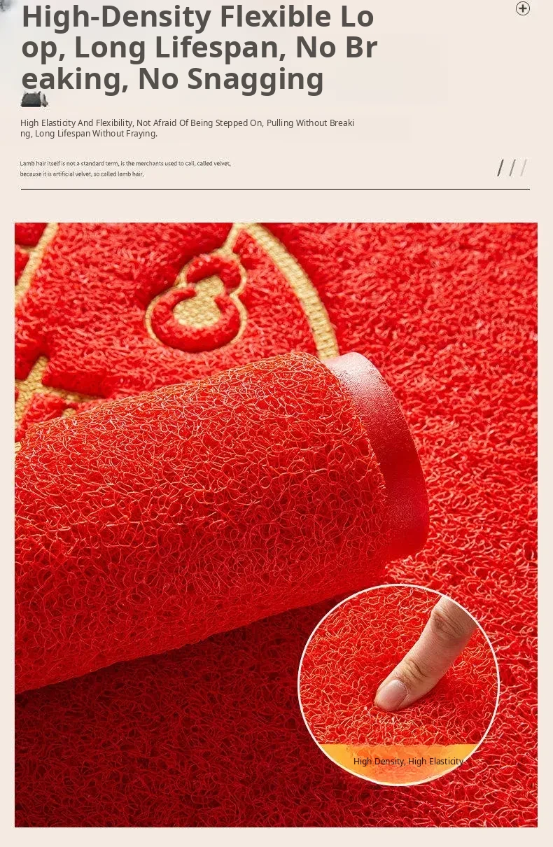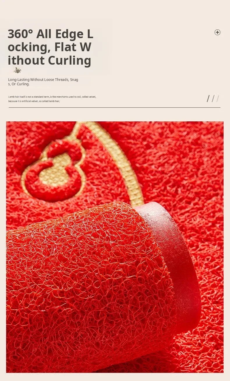 Lucky Red Leather-Embossed Silk Loop Doormat