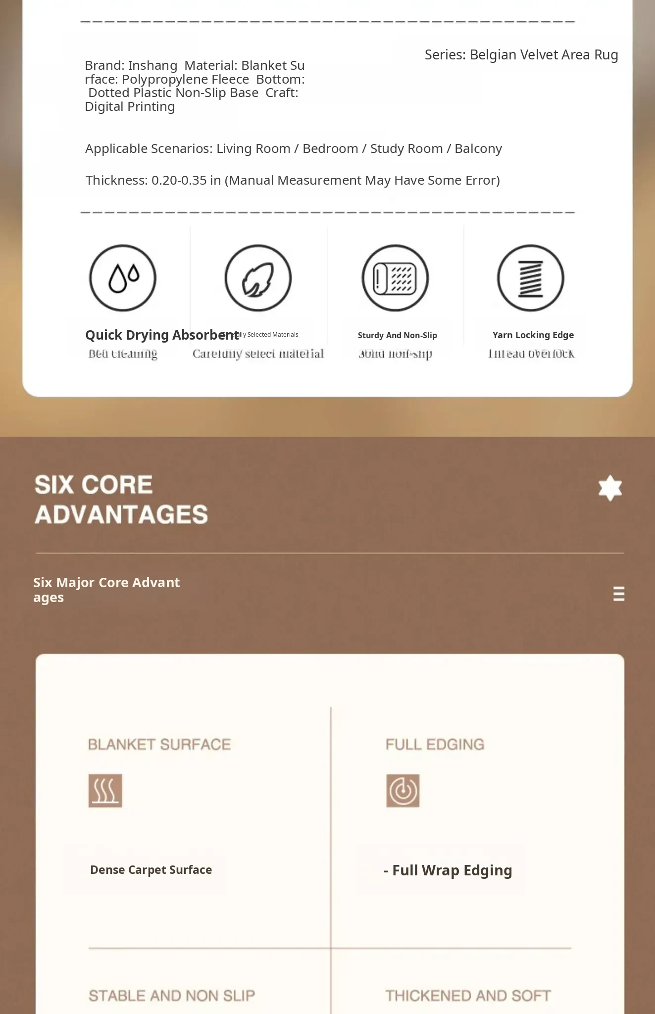 Busaida Li Belgian Velvet Floor Mat - Small Rounded Corners