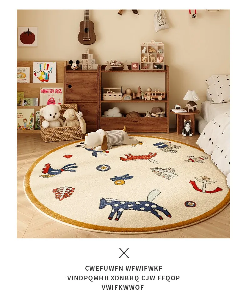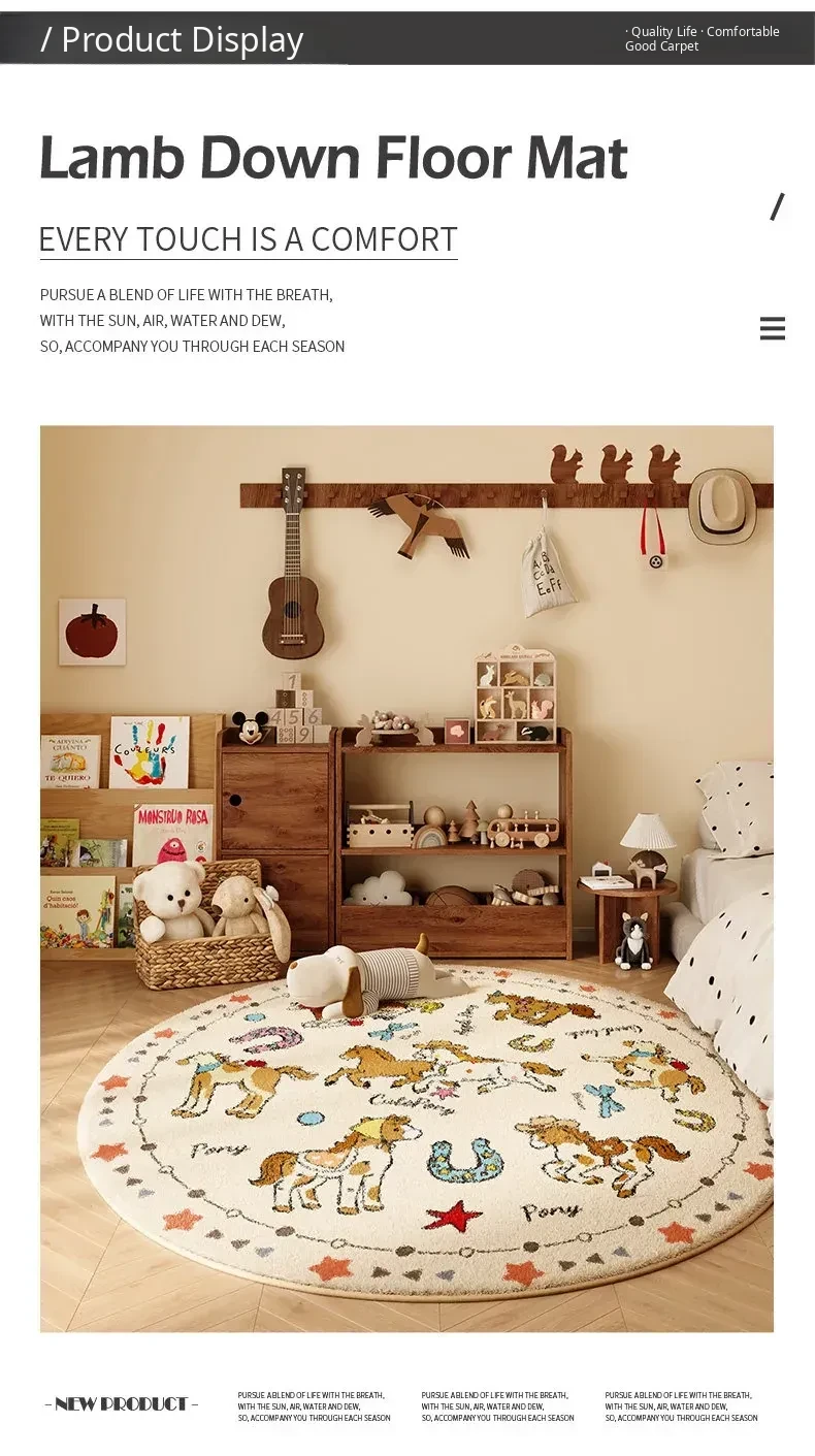 Year of the Horse Round Plush Rug - Cozy Bedroom Bedside Mat for Kids' Rooms, Cute Cartoon Floor Mat, Perfect Small Size for Walk-In Closets and Play Areas